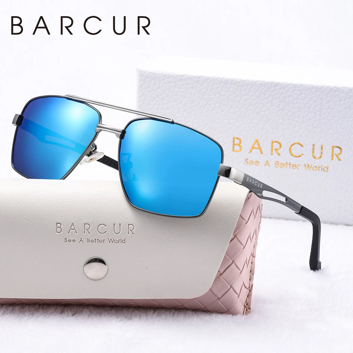BARCUR Luxury Brand Square Men Polarized Sunglasses Stainless Steel Frame Metal Spring Feet Comfort Outdoor Activities Glasses