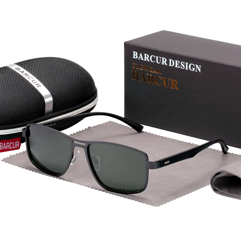 BARCUR Polarized Men Sunglasses Square Stainless Steel Frame TR90 Sun glasses Oculos De Sol gafas