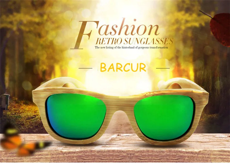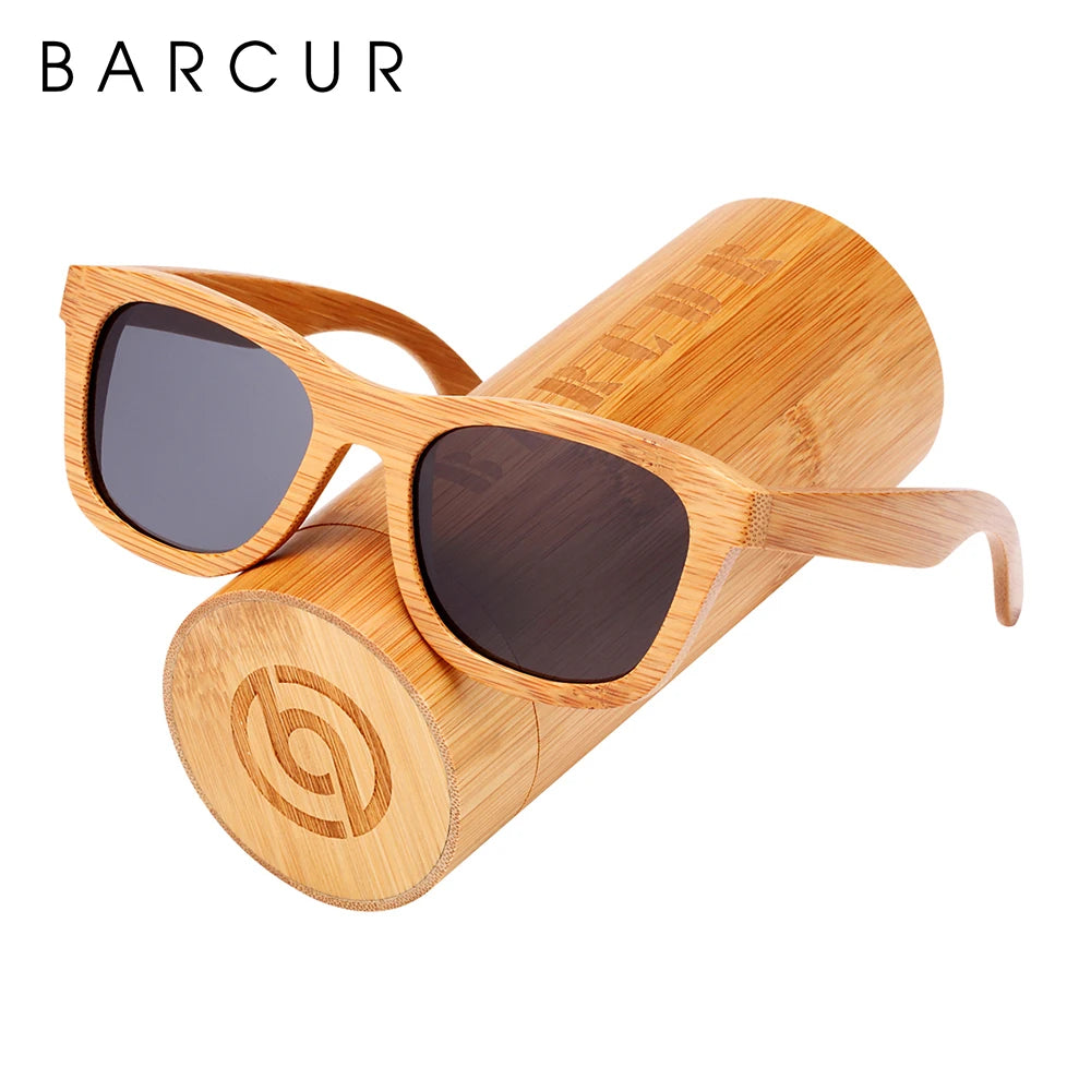 BARCUR Retro Square Men Sun Glasses Women Polarized Sunglasses Natural Bamboo Handmade Wood Sunglasses Beach Wooden UV400