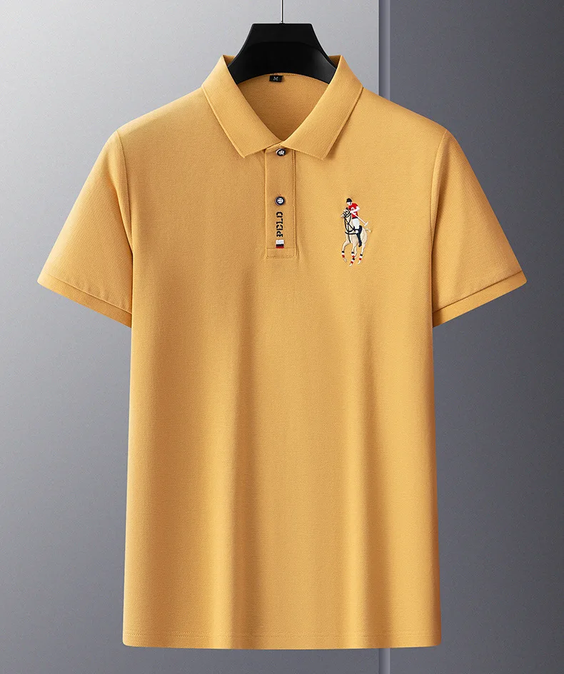 قميص بولو رجالي مطرز من القطن الخالص بأكمام قصيرة من القطن المثلج، صيفي جديد، كاجوال، قابل للتنفس، مقاس 4xl