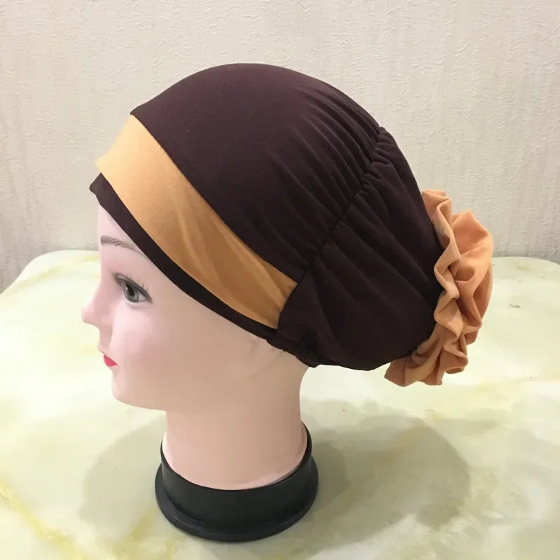 Casual Headdress Big Flower Headscarf Muslim Woman Hair Loss Cap Islamic Baotou Chemo Hat Color Matching Hats Headwear