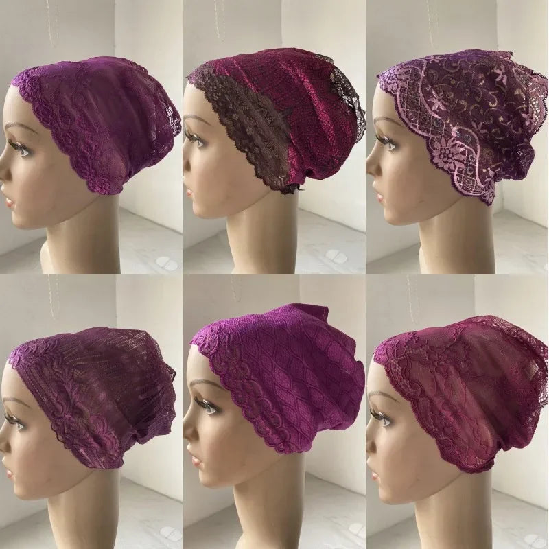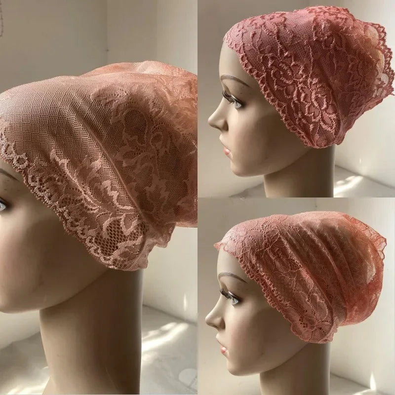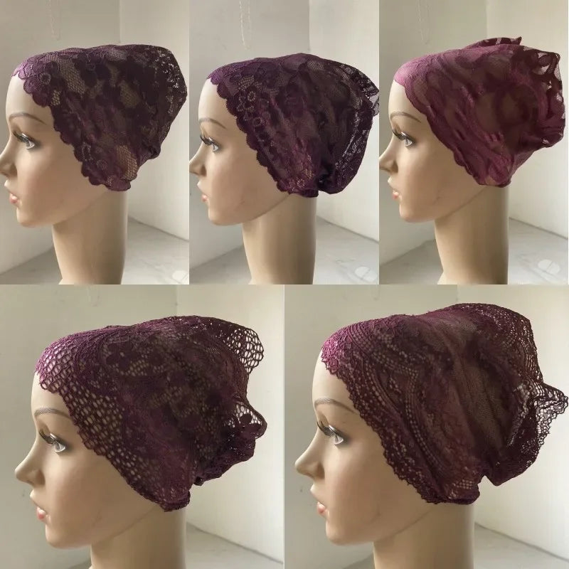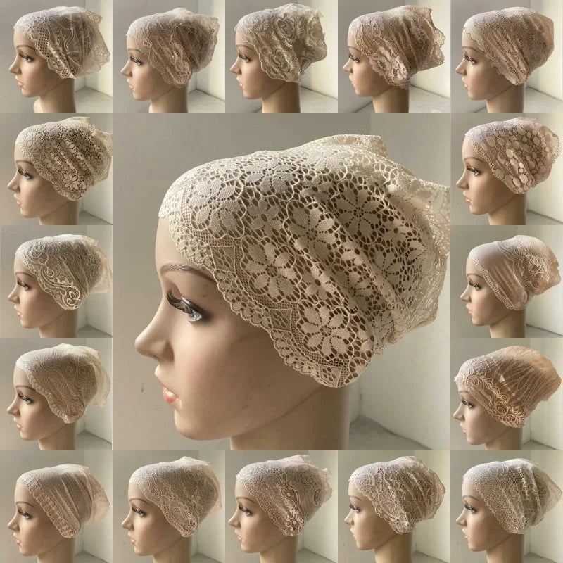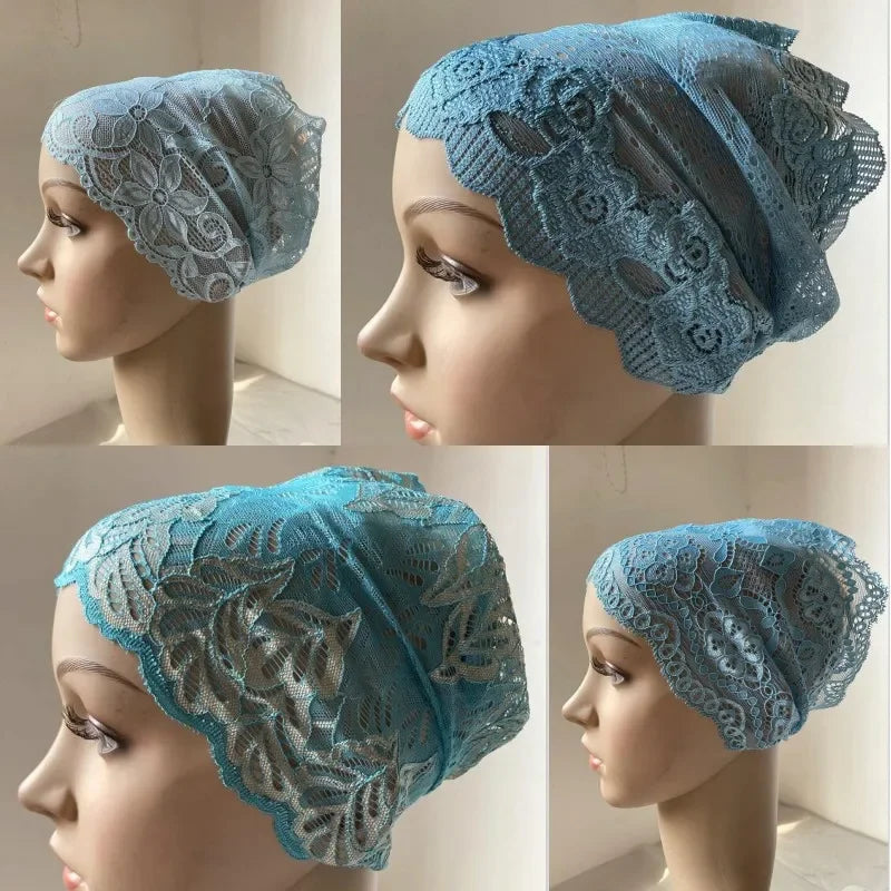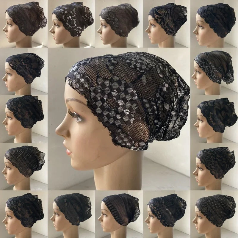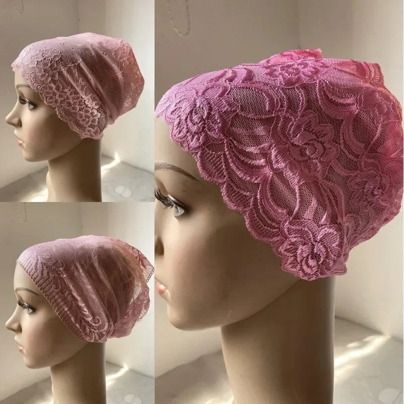 Full Cover Head Inner Cap Flower Lace Muslim Headscarf Islamic Headwear Underscarf Turban Indian Hat Pattern In Random