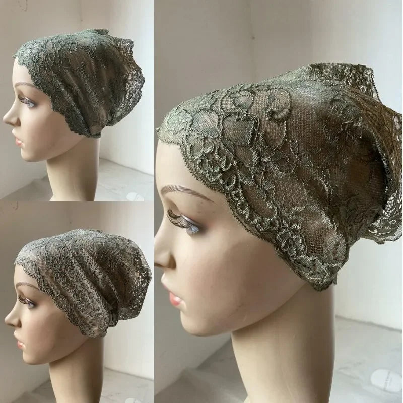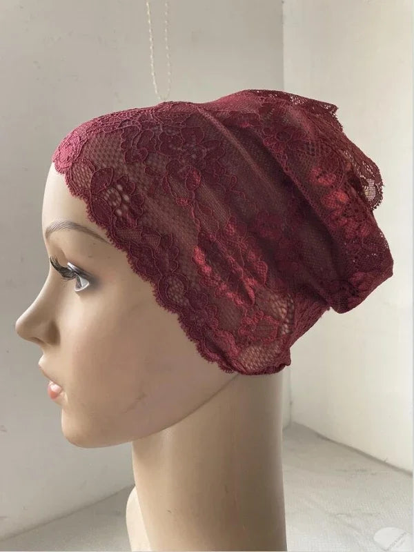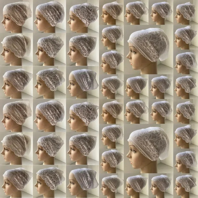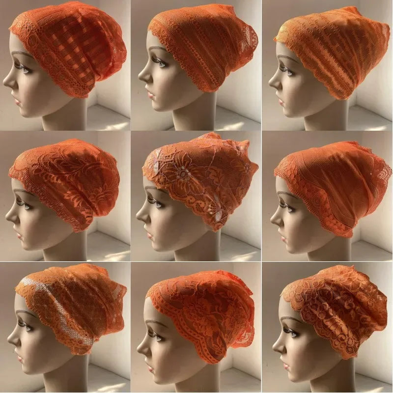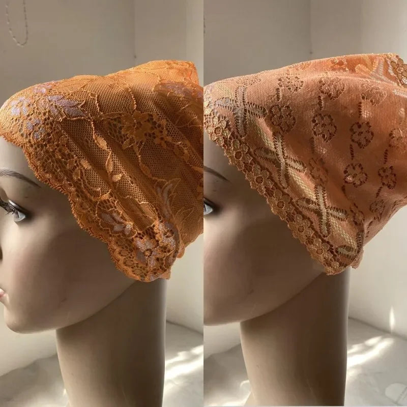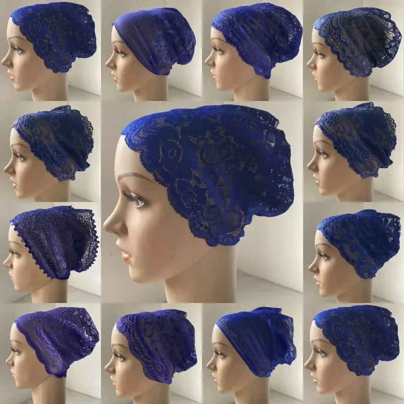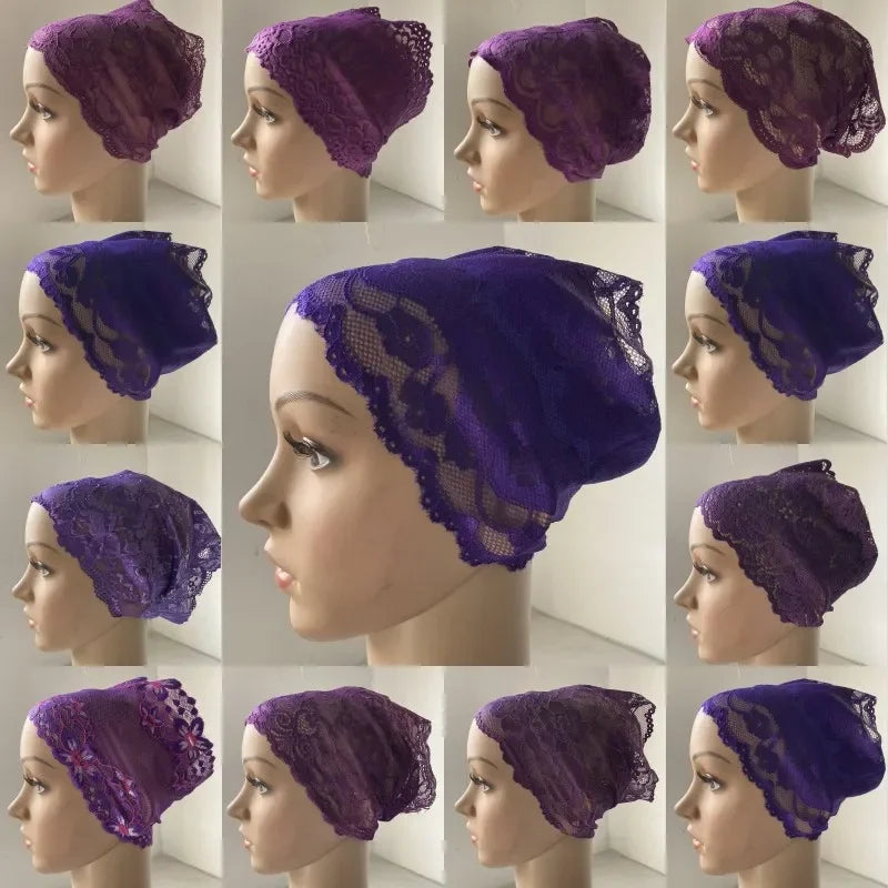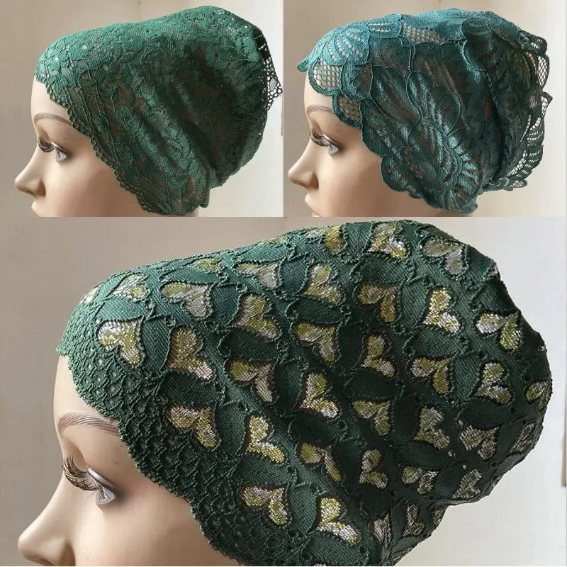 Full Cover Head Inner Cap Flower Lace Muslim Headscarf Islamic Headwear Underscarf Turban Indian Hat Pattern In Random