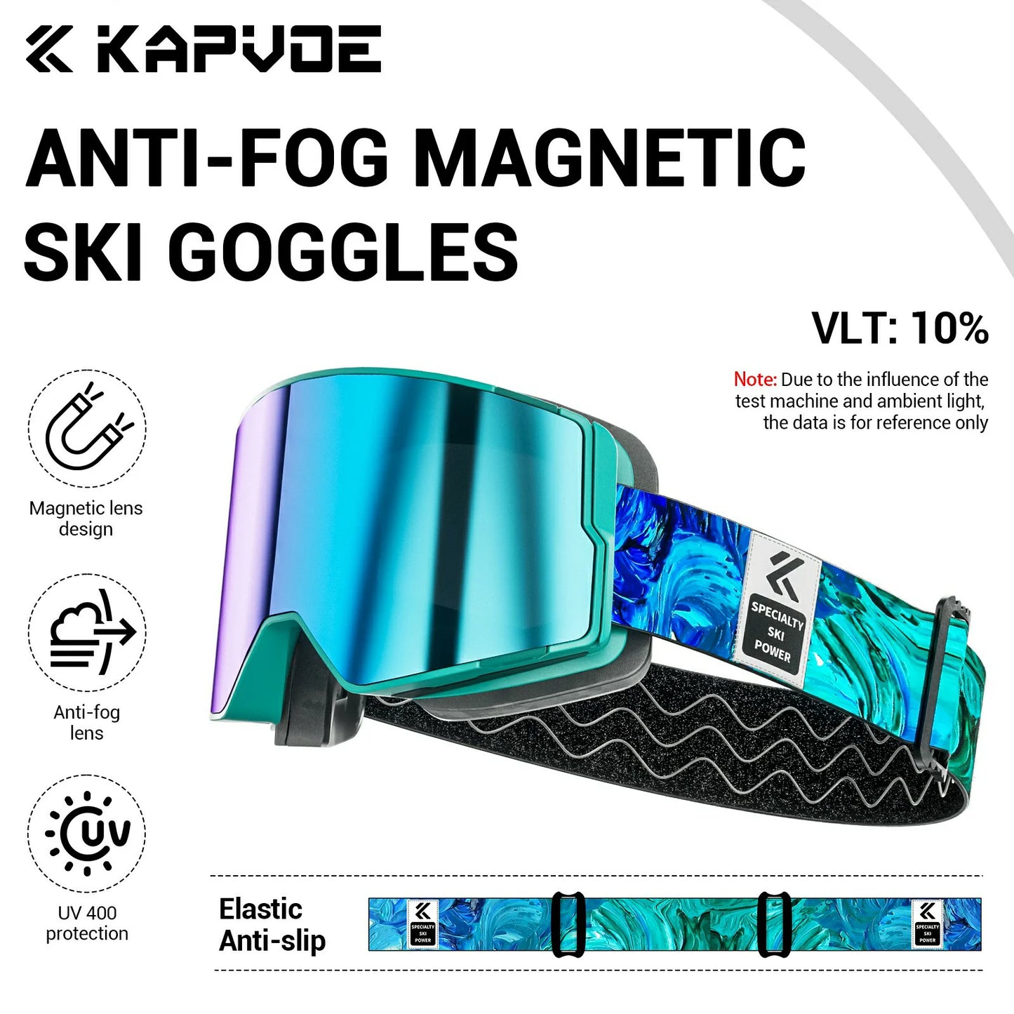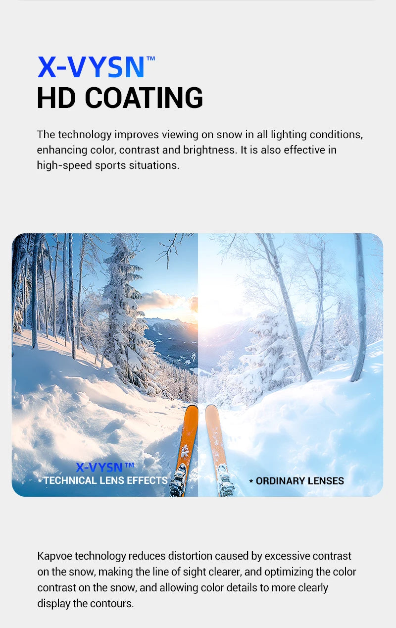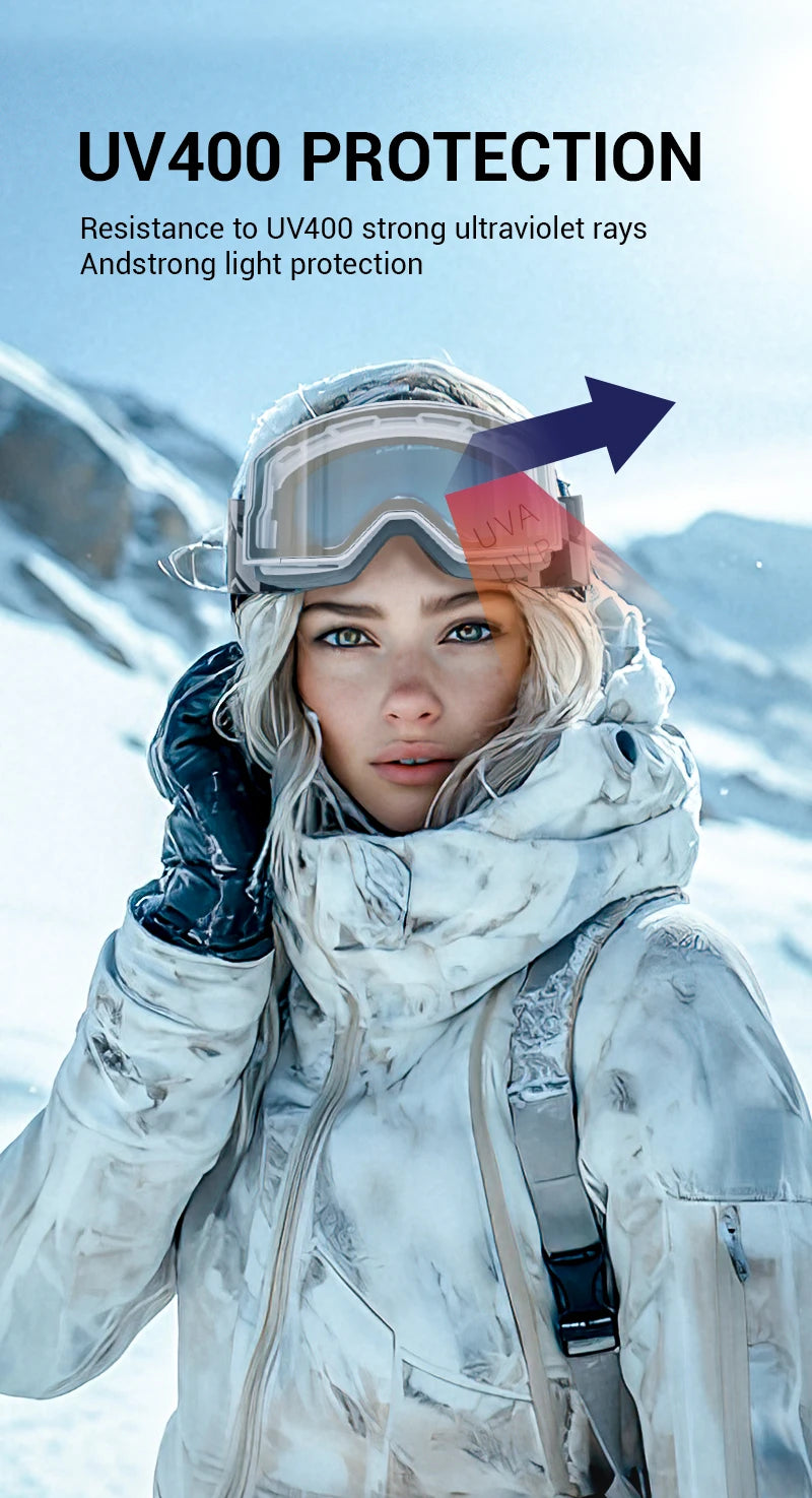 ⛷️Wider field of view and clear vision without fogging: KAPVOE magnetic ski goggles feature large cylindrical magnetic lenses that provide a 180° wider field of view and clear mirror images. The double lens design, UV400 protection and anti-fog coatings (inside and outside) ensure that your eyes are protected from harmful UV rays while skiing and you have a clear, fog-free vision.