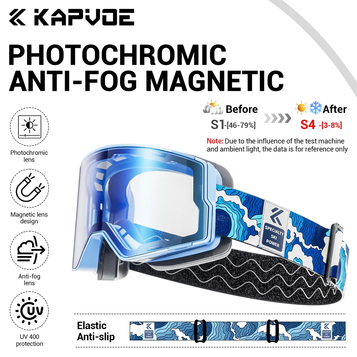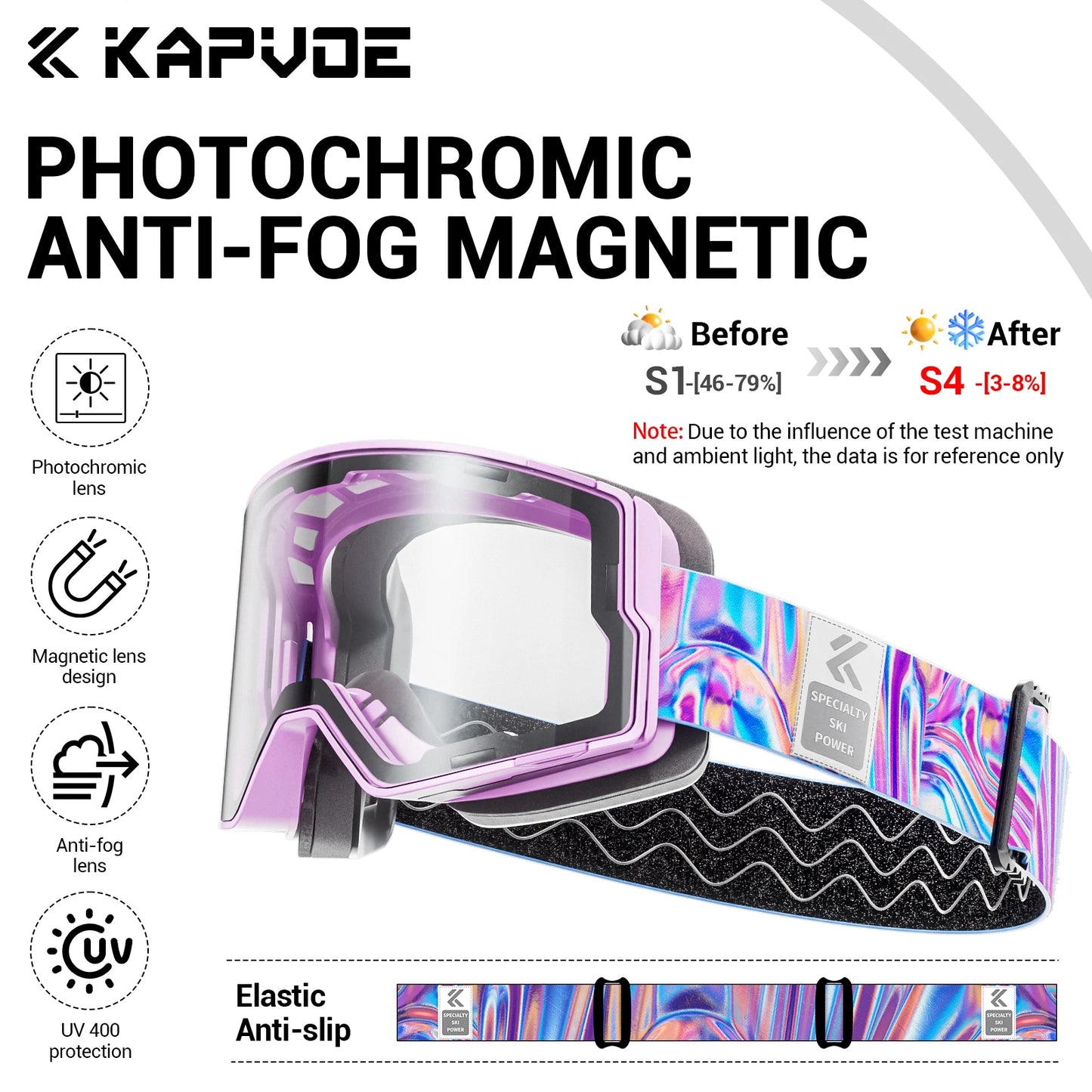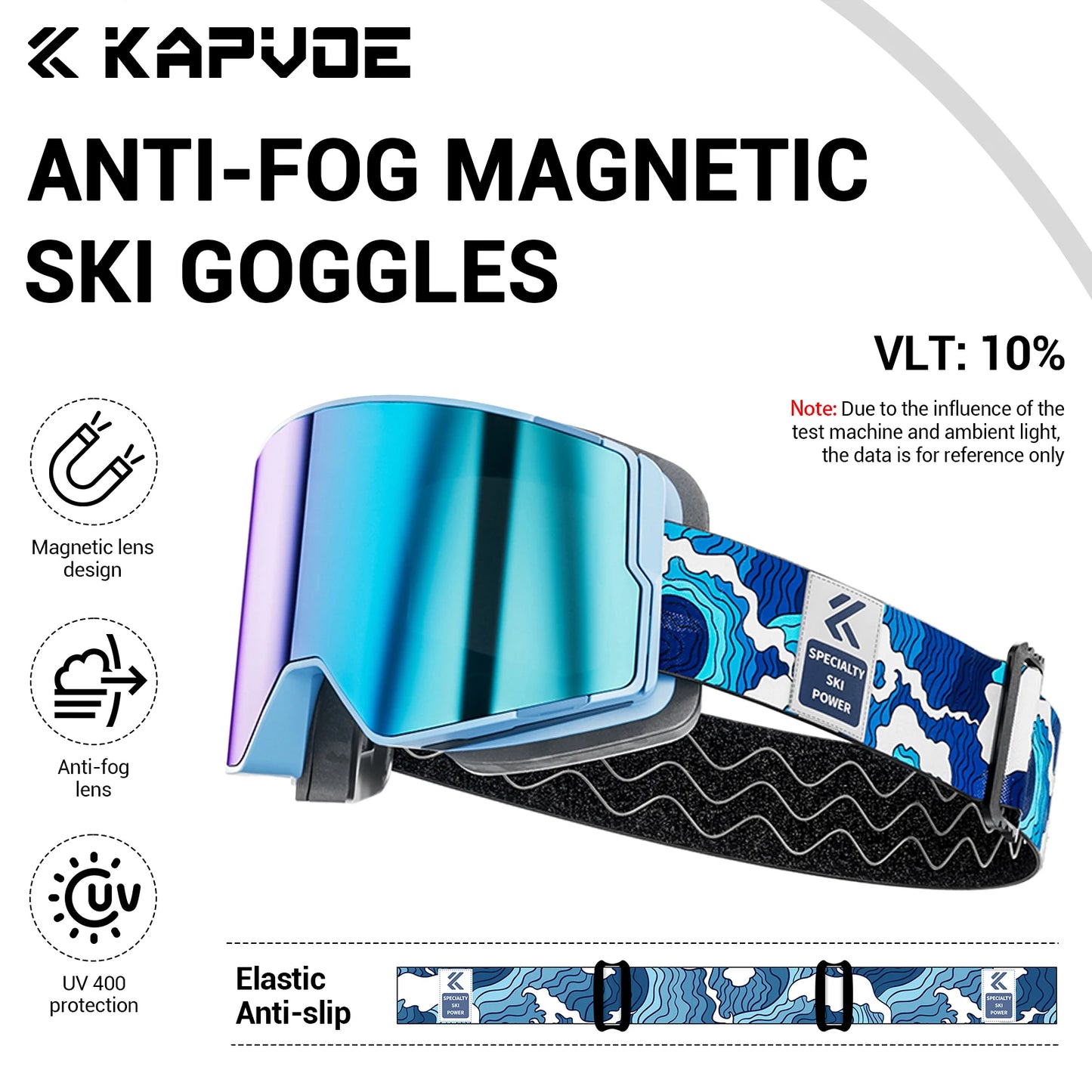 ⛷️Wider field of view and clear vision without fogging: KAPVOE magnetic ski goggles feature large cylindrical magnetic lenses that provide a 180° wider field of view and clear mirror images. The double lens design, UV400 protection and anti-fog coatings (inside and outside) ensure that your eyes are protected from harmful UV rays while skiing and you have a clear, fog-free vision.