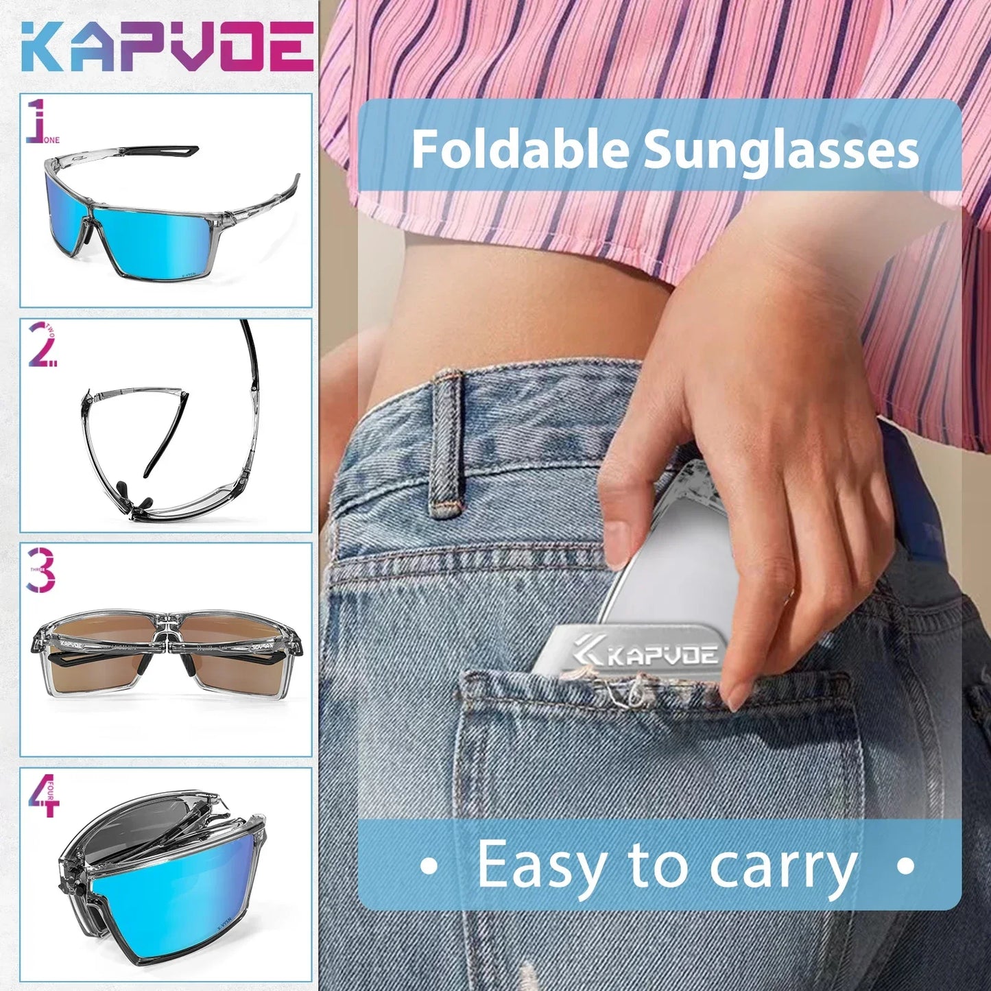 Kapvoe Polarized Folding Sunglasses Colored Multi Portable Cycling Glasses UV400 Light Weight Runing Hiking Baseball Glasses