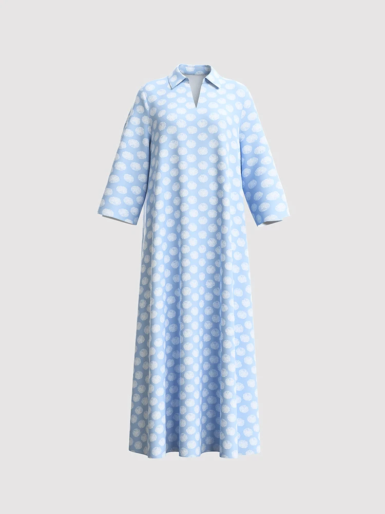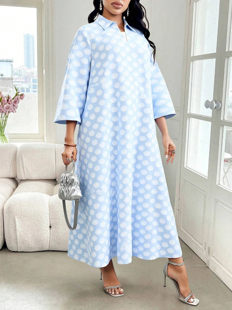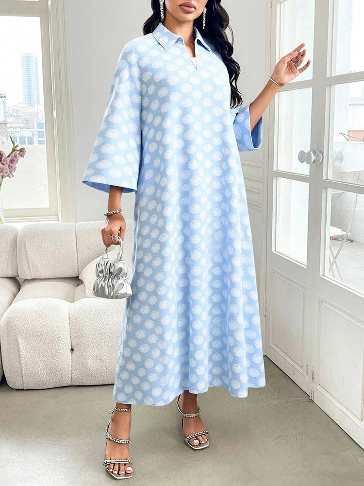 Rafiah Women's Arabian Dress Even Dress 2025 Summer Comfortable Full Print Long Sleeve V-Neck Loose Fit Long Dress