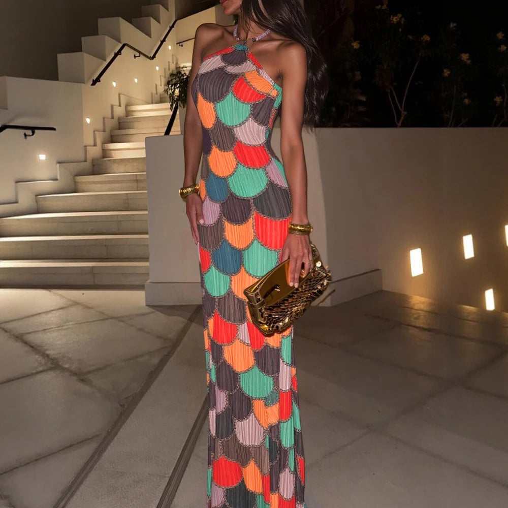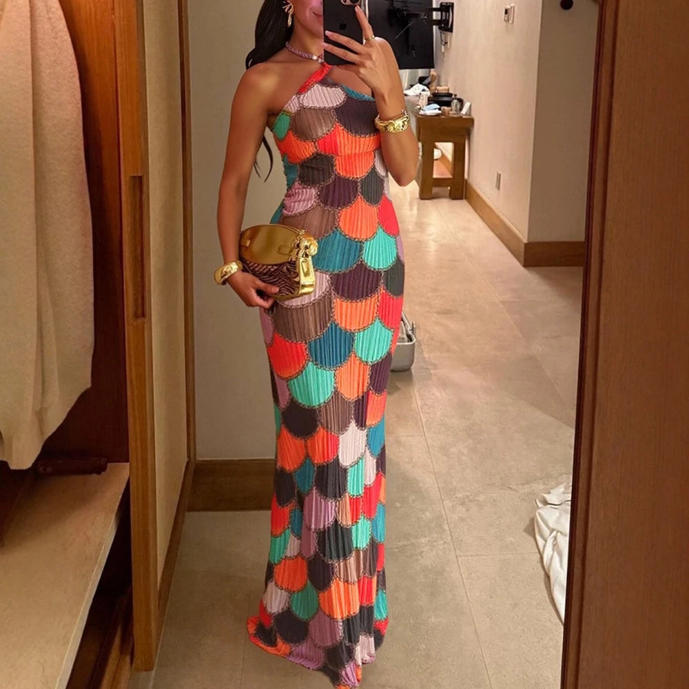 Rafiah Women's Arabian Dress Spring Summer K-Fashion Full Print Sleeveless Halter Neck Strapless Arabian Dress For Women