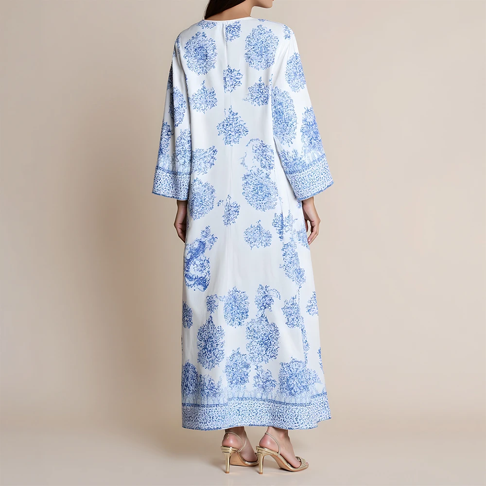 Rafiah Women's Dresses Summer Elegant Decent 2025 Floral Full Print Y2k Long Sleeve V-Neck Midi A Line Long Dresses