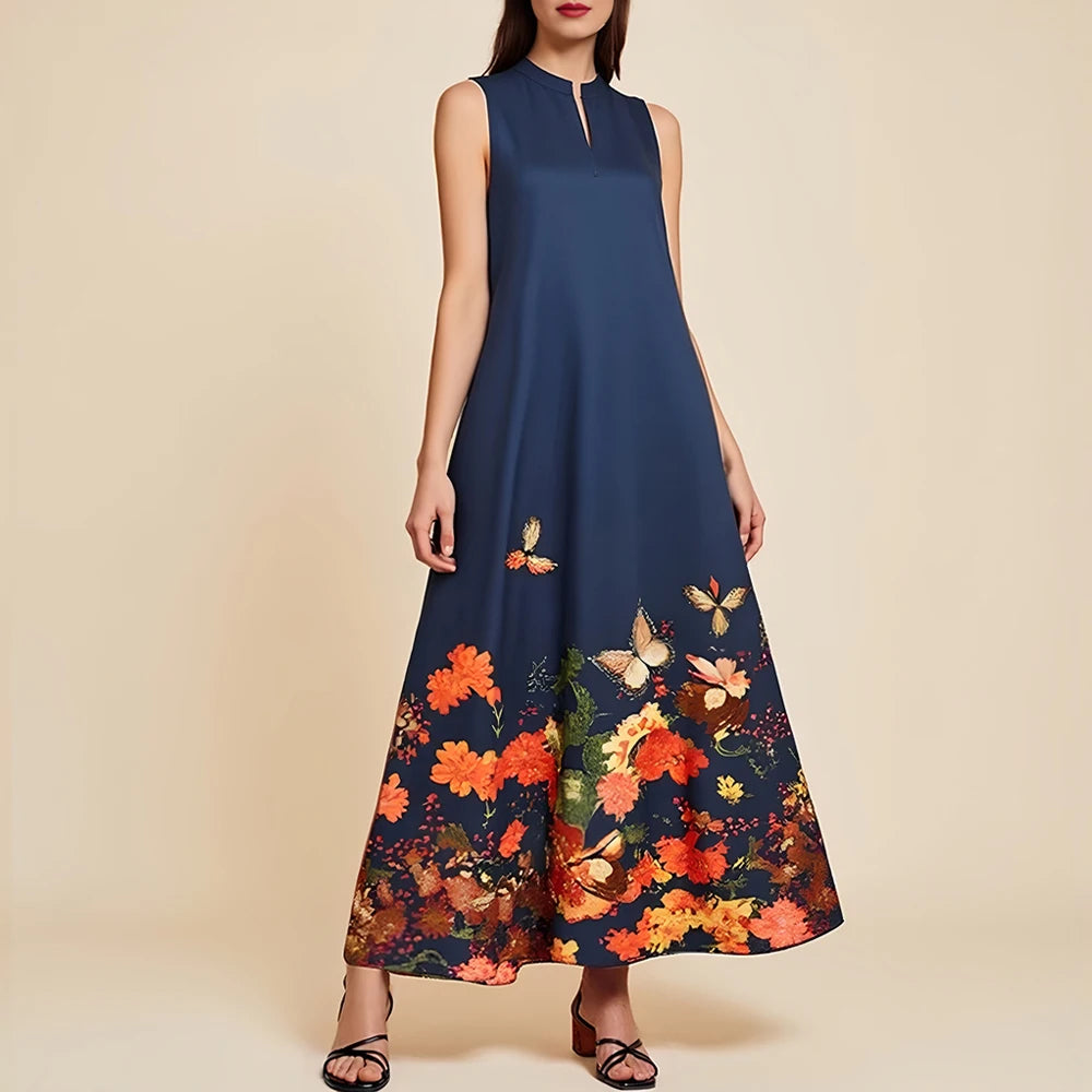 Rafiah Women's Dresses Summer Elegant Fashion 2025 Butterfly Print Sleeveless V-Neck Midi Sweet Dating Dresses 0