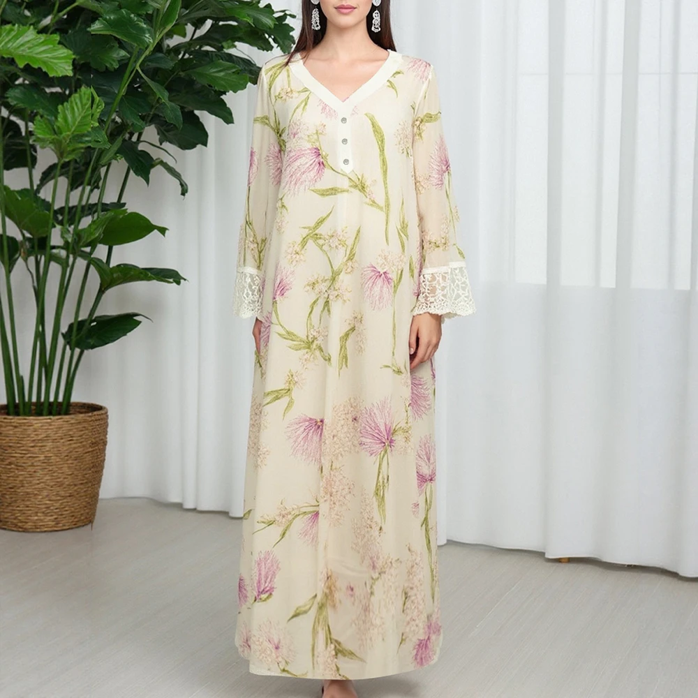 Rafiah Women's Dresses Summer Elegant Fashion 2025 Floral Business Short Sleeve V-Neck A Line Midi VacationLong Dress