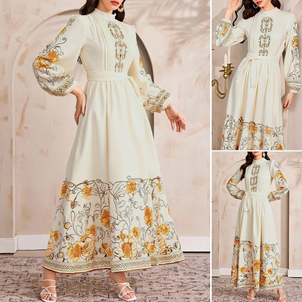 Rafiah Women's Dresses Summer Elegant Fashion 2025 Plain Long Sleeve Crew Neck A Line Midi Vacation Long Dresses