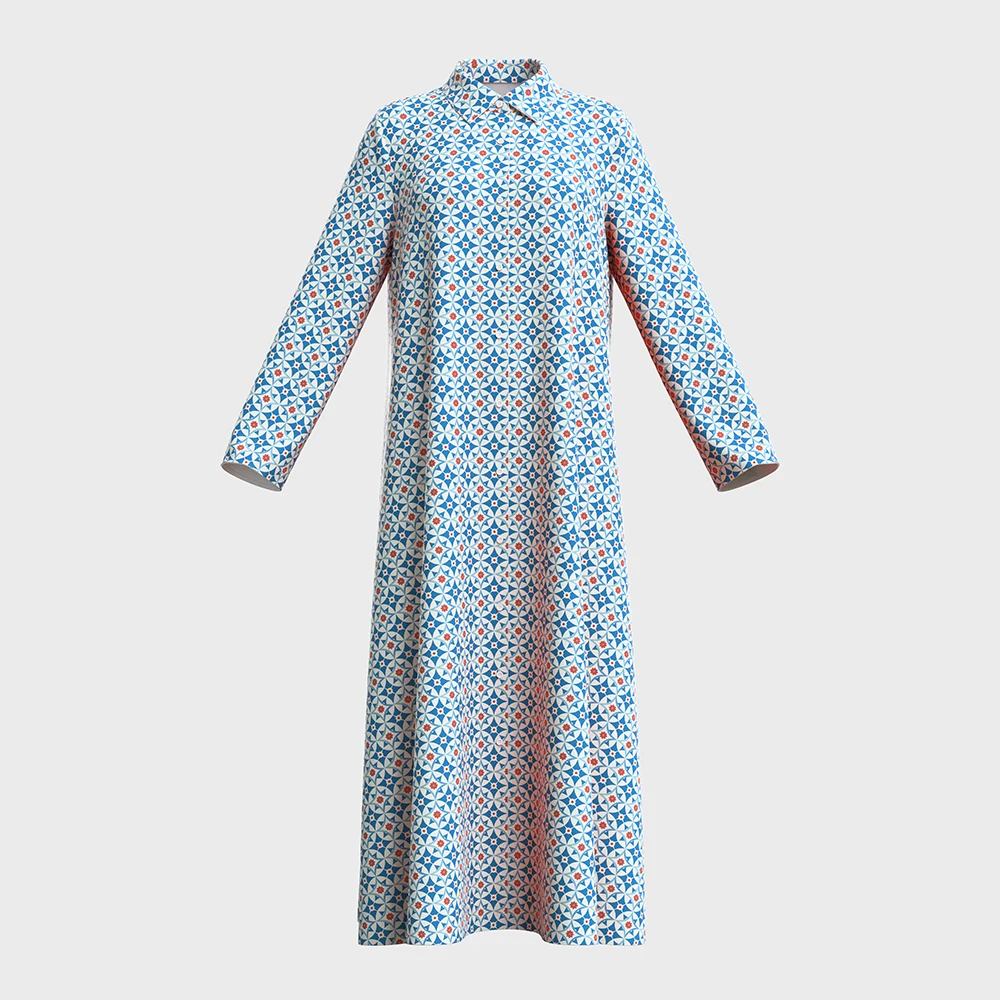 Rafiah Women's Long Dresses Summer Elegant 2025 Full Print Chic Long Sleeve Shirt Collar A-Line Midi Vacation Dresses
