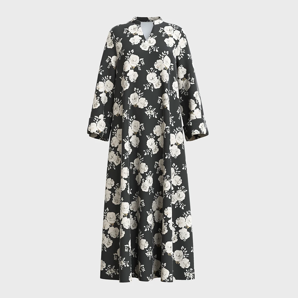 Rafiah Women's Long Dresses Summer Elegant 2025 Full Print Floral Long Sleeve Shirt Collar A-Line Midi Vacation Dresses