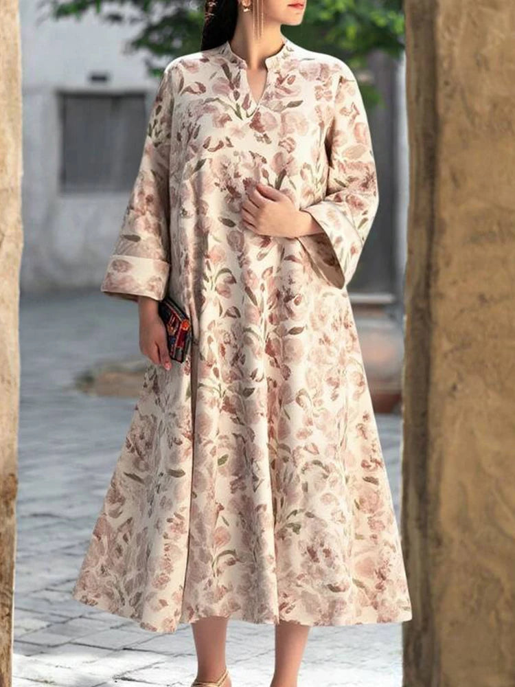Rafiah Women's Summer Arabian Dress Elegant Floral Long Sleeve V-Neck Dating Long Dresses Evening Dresses 2025
