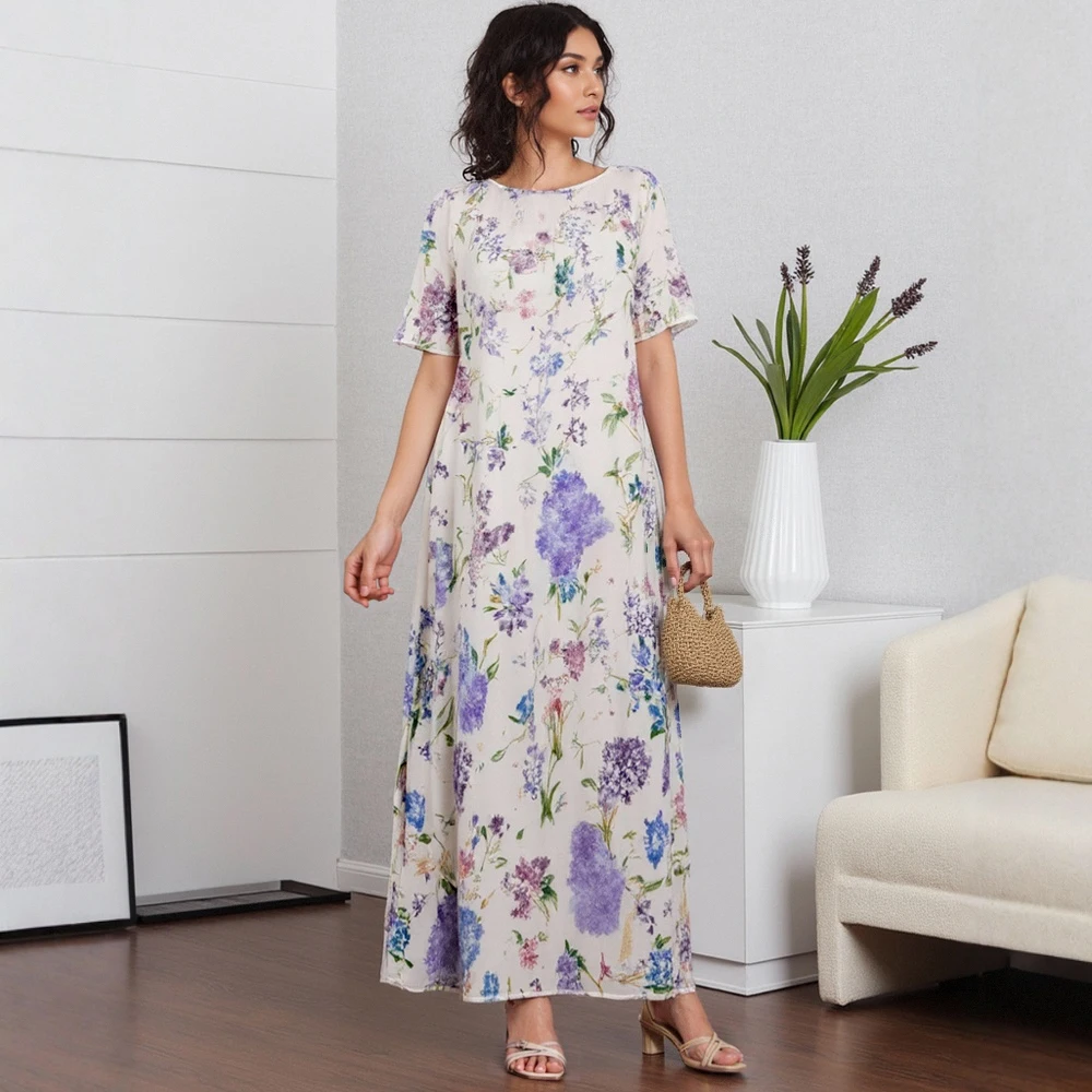 Rafiah Women's Summer Arabian Dresses Cultural Loose Floral Full Print Half Sleeve Keyhole Neckline Midi Casual Arabian Dresses