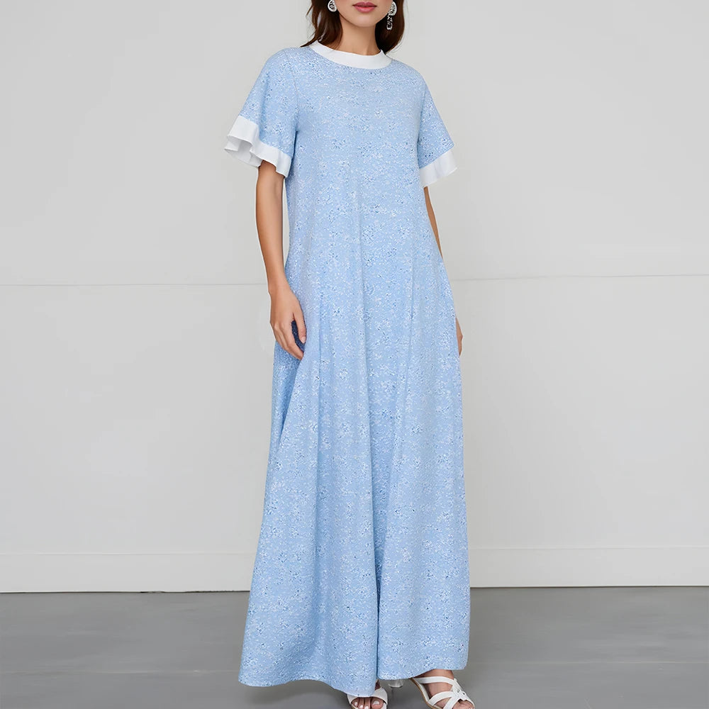 Rafiah Women's Summer Dress Simple Comfortable Contrast Color Short Sleeve Crew Neck Mixi Shift Dresses Casual Arabian Dress
