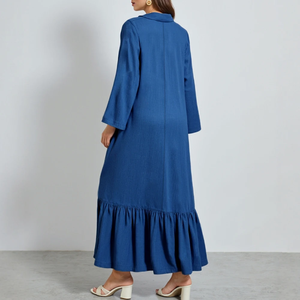 Rafiah Women's Summer Dress Simple Decent Plain Ruffle Long Sleeve Shirt Collar Midi Shirt Dresses Casual Arabian Dress