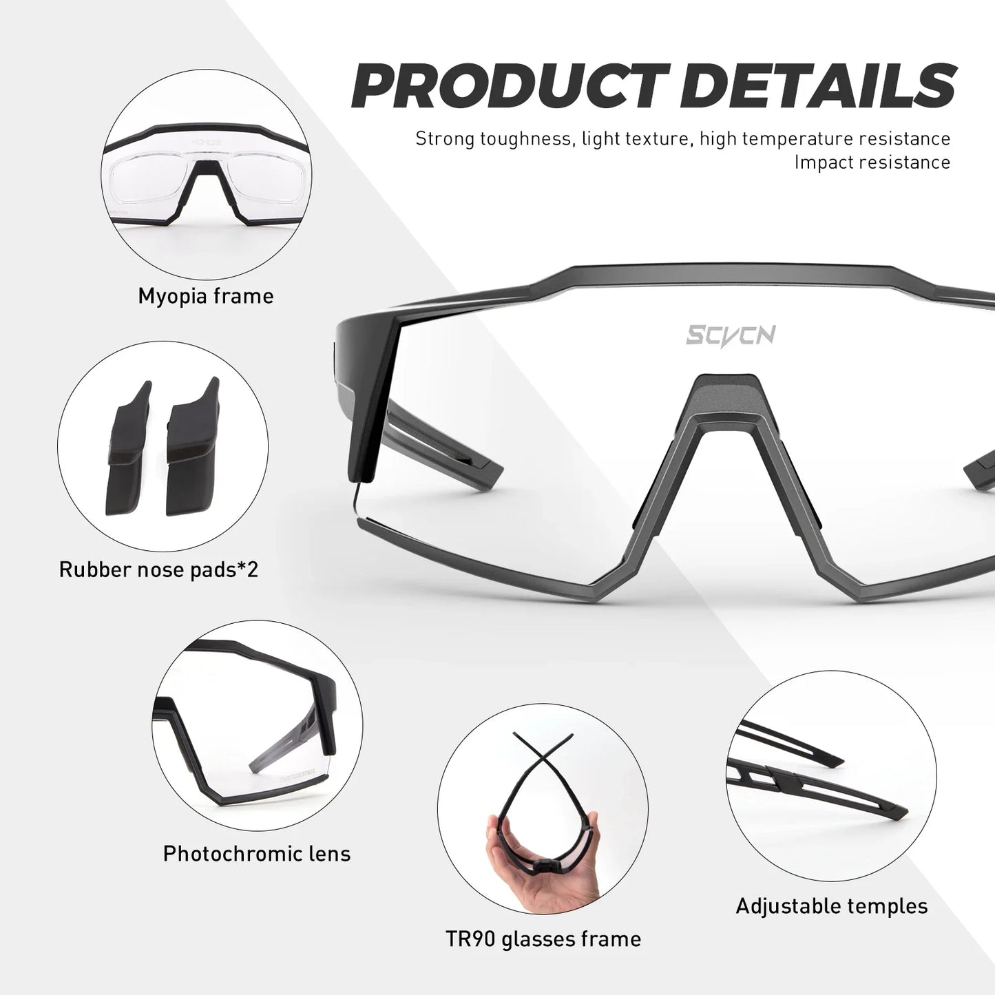 SCVCN Photochromic Cycling Glasses Bike Sunglasses for Men Fashion Mountain Bicycle Road Speed Goggles Eyewear Sports MTB Bike