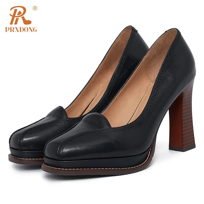 Step into timeless elegance with these Women’s Genuine Leather Retro Platform High Heels from GrabliWorld. Crafted from premium sheepskin leather, these pumps feature a sleek slip-on design, a 10 cm square heel, and a subtle platform for added comfort. Perfect for office wear, formal occasions, or a classy night out, they combine durability, style, and all-day comfort. The retro round-toe silhouette and versatile black or brown finish make them a wardrobe essential for any fashion-forward woman.