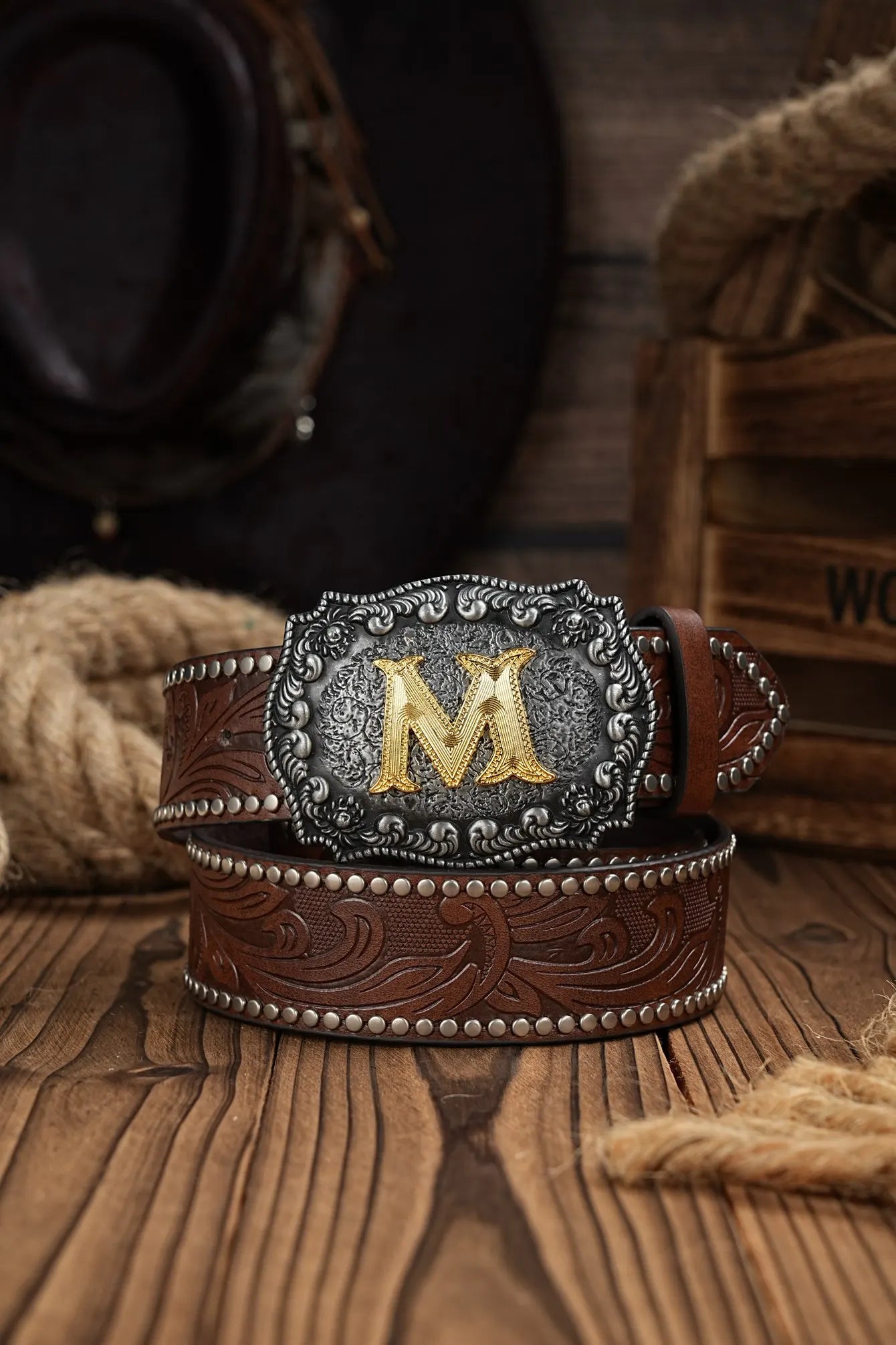 A casual, individual and retro belt, Western-style clothing accessory, metal buckle, PU belt, suitable for both men and women