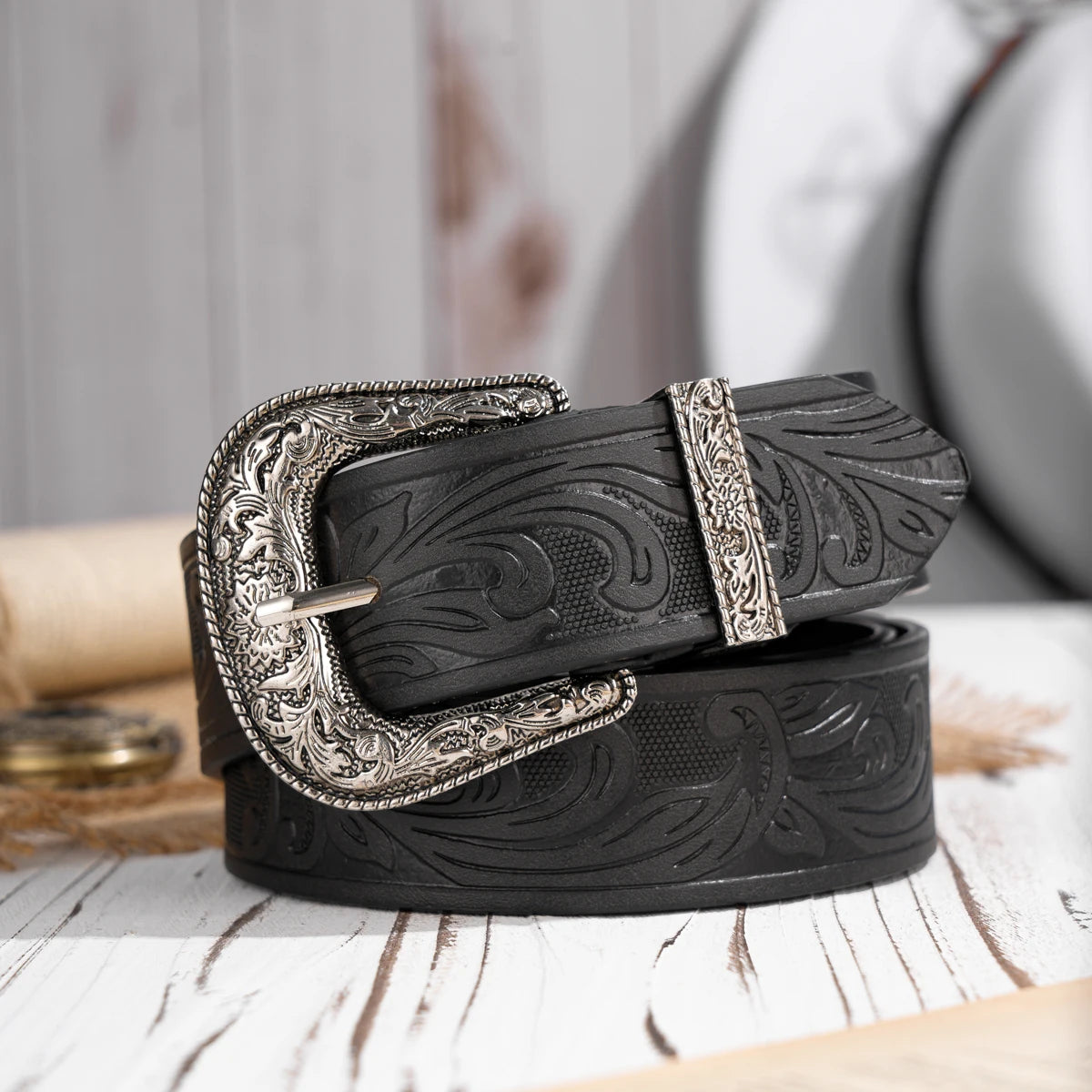 A casual, individual and retro belt, Western-style clothing accessory, metal buckle, PU belt, suitable for both men and women