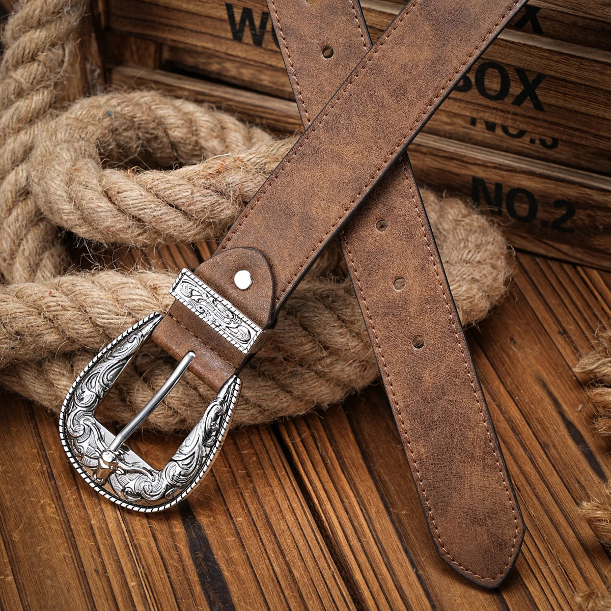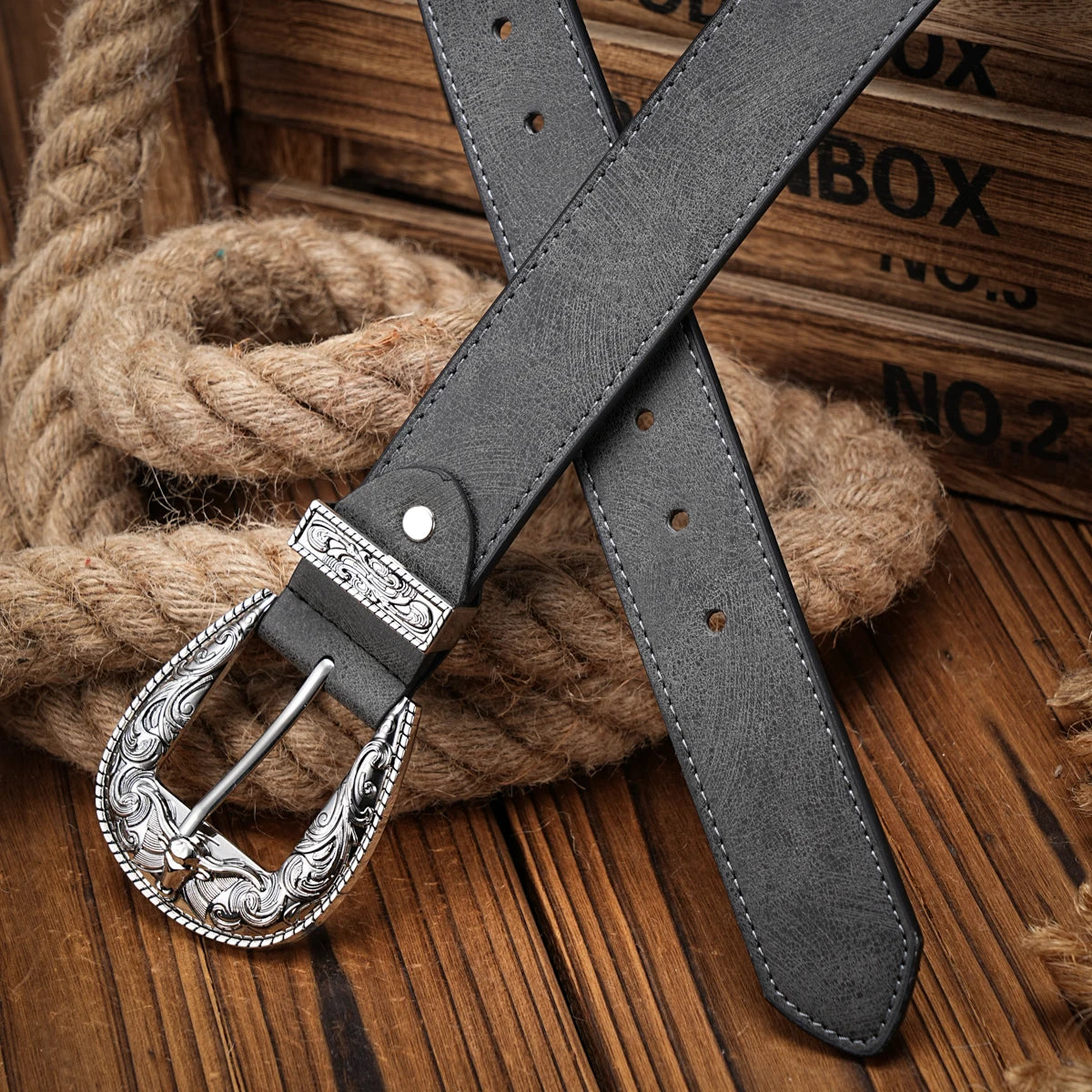 A men's and women's casual retro belt Western style! PU leather belt with metal buckle, suitable for daily work wear