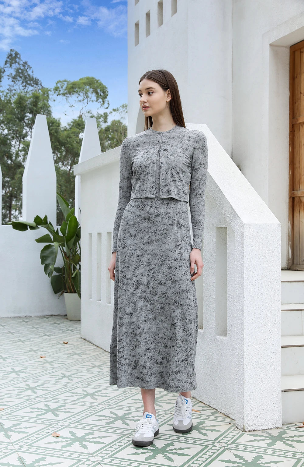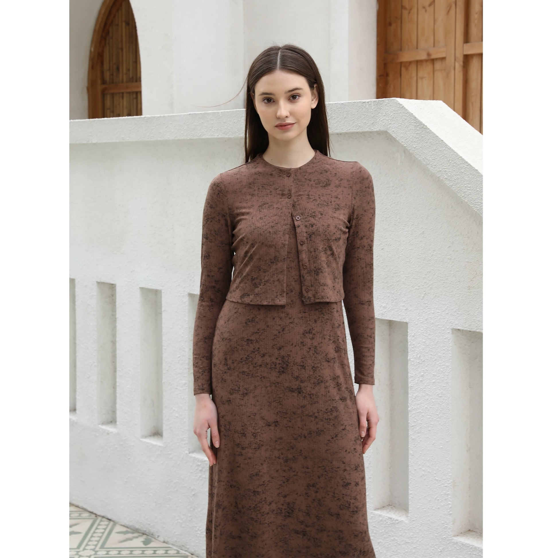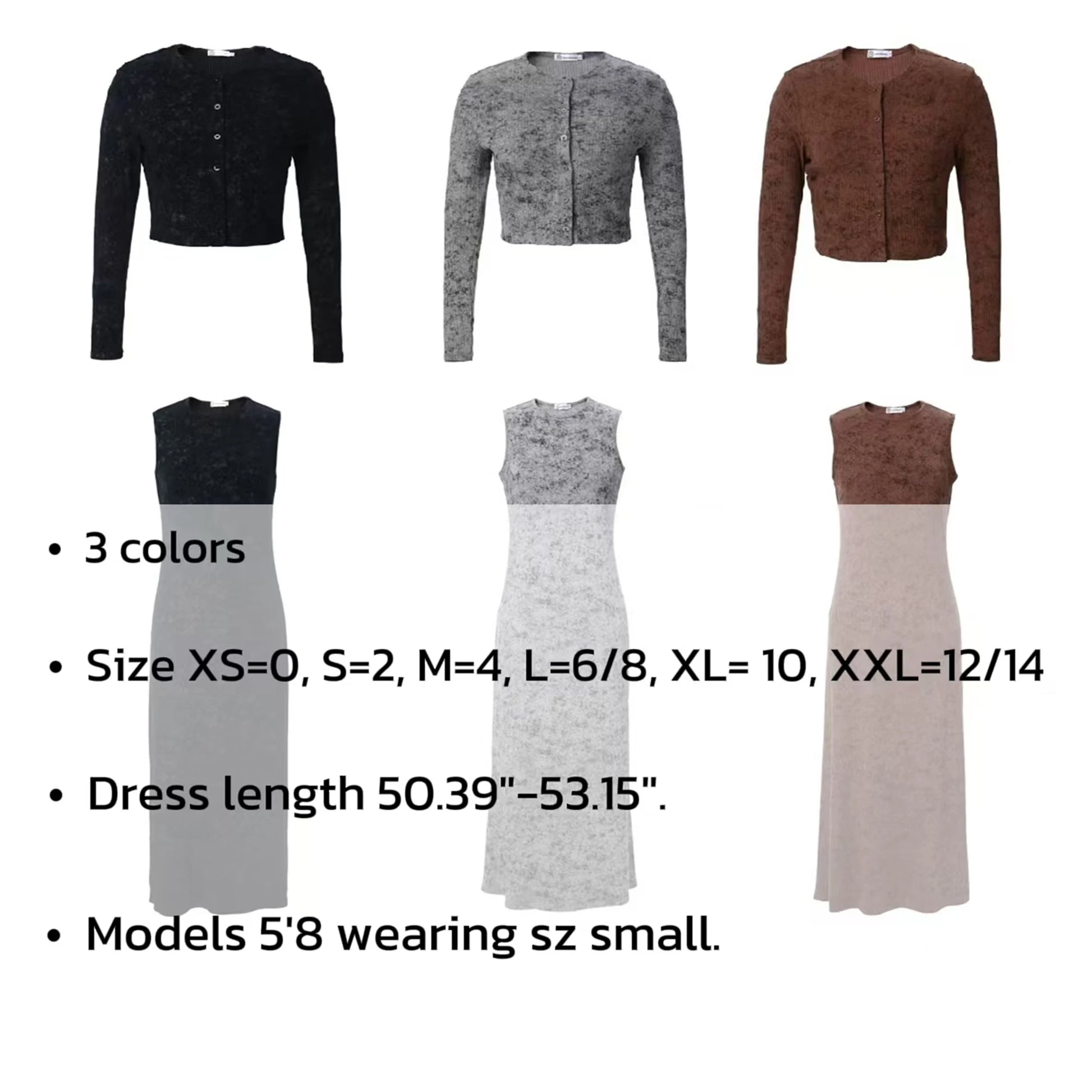 Set Includes: Ribbed knit cardigan + ankle-length tie-dye dress