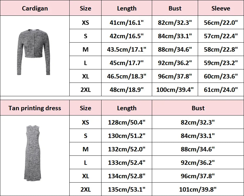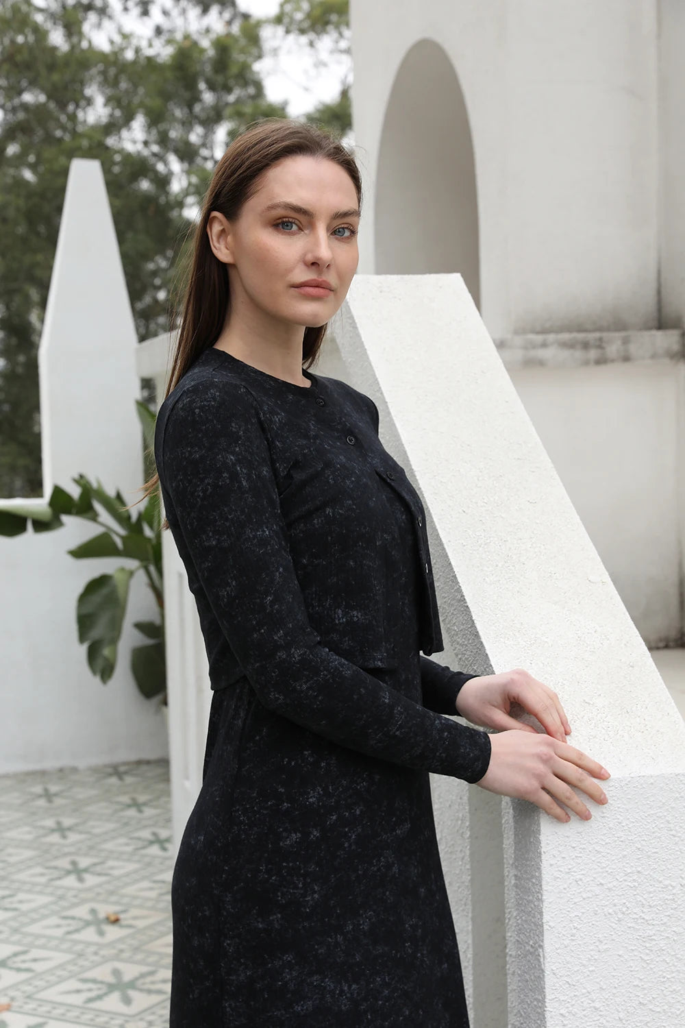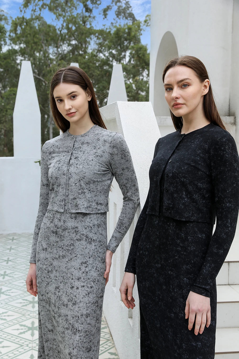 Set Includes: Ribbed knit cardigan + ankle-length tie-dye dress