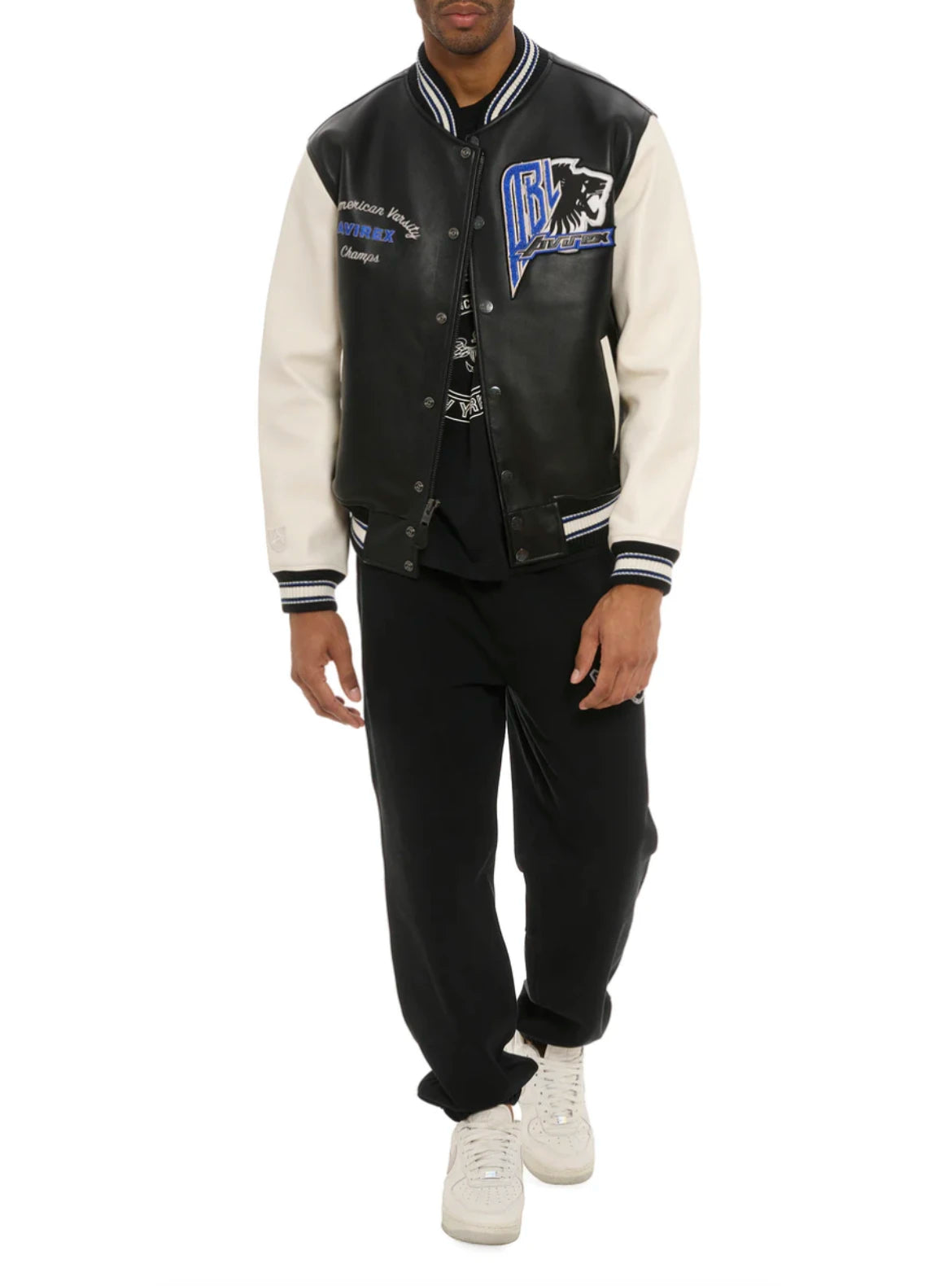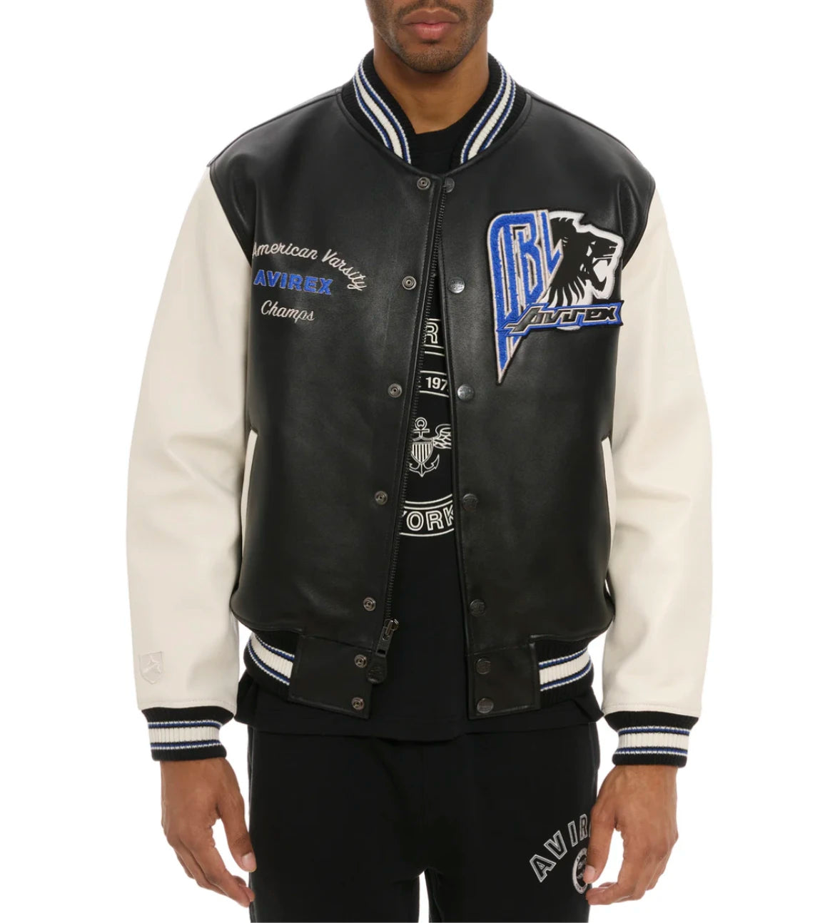 AVIREX New Men's 100% French Lambskin Jacket Authentic US Size Original Iconic Standing Collar Ribbed Hem Genuine Leather Jacket