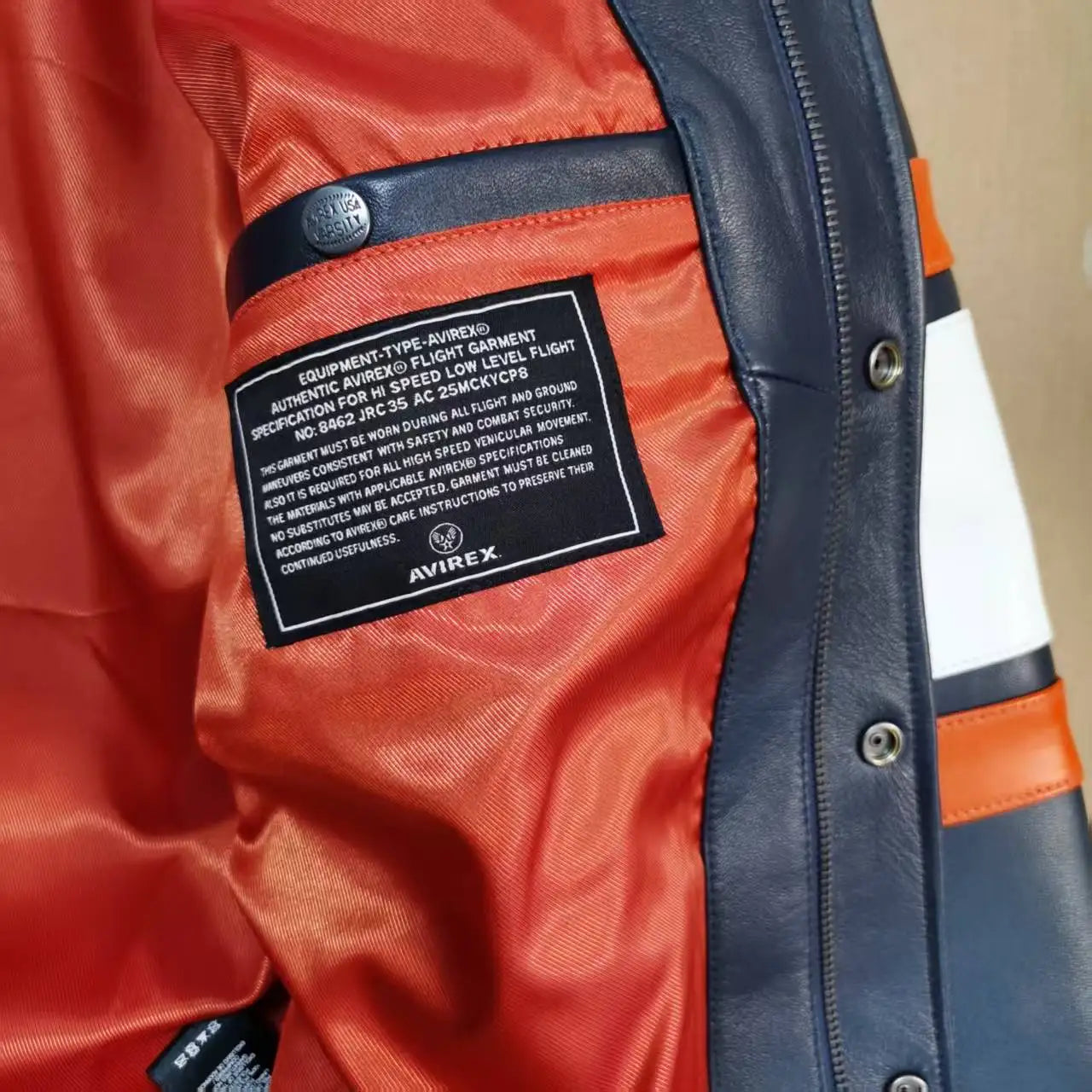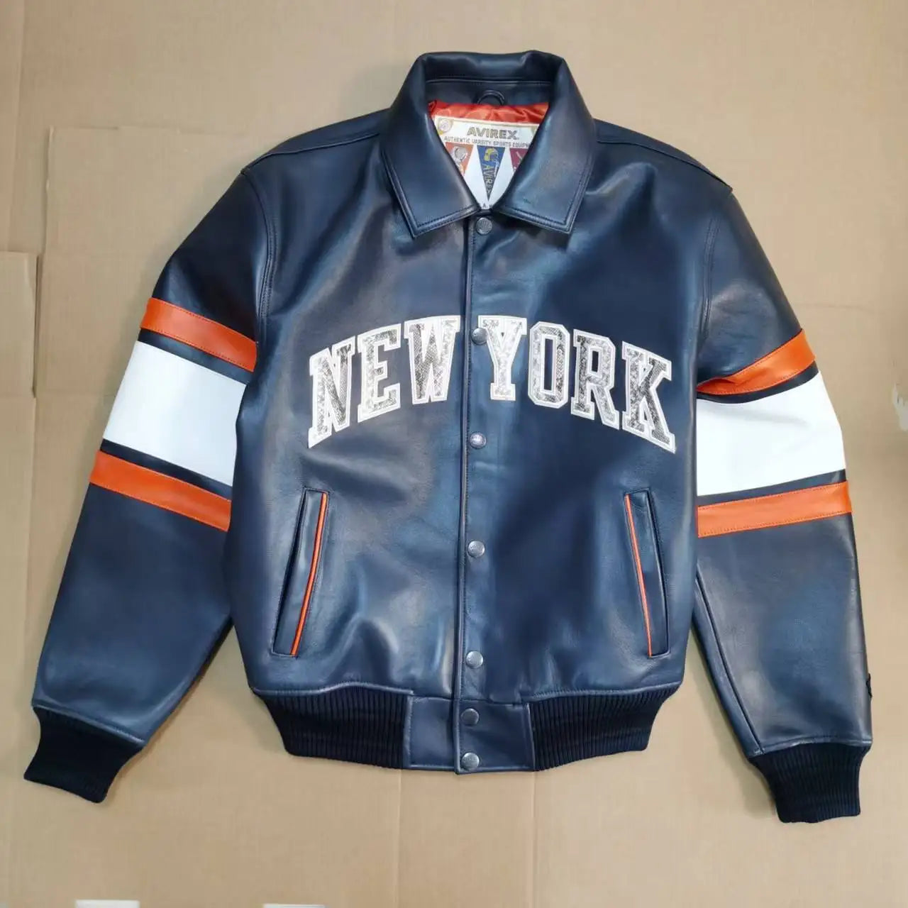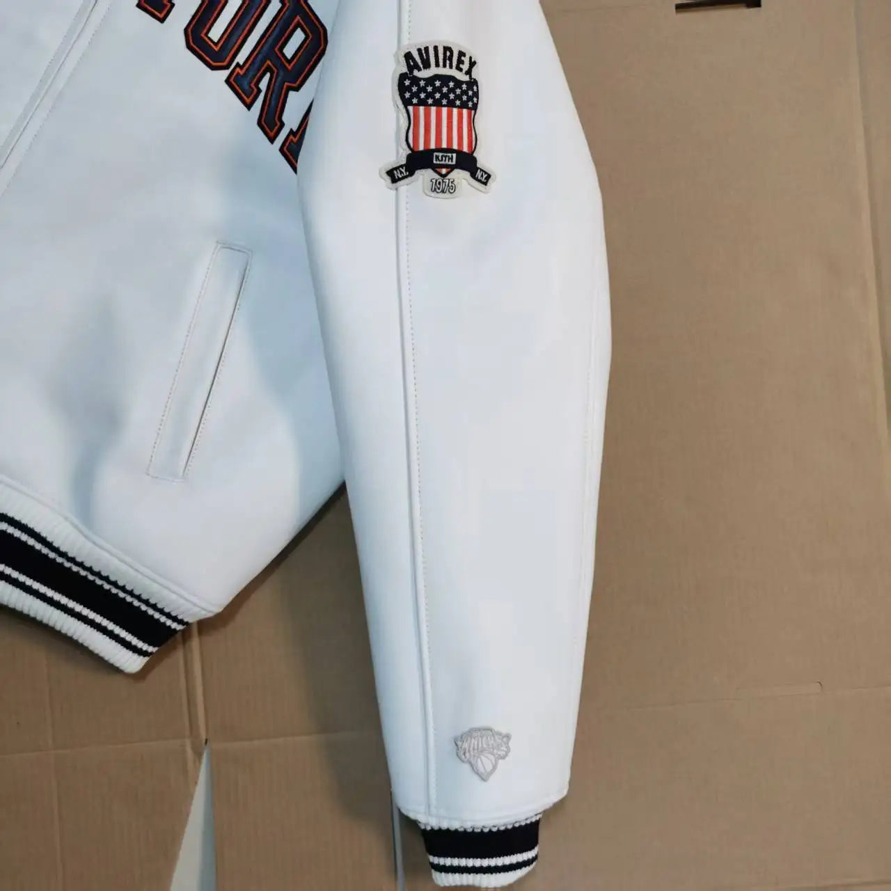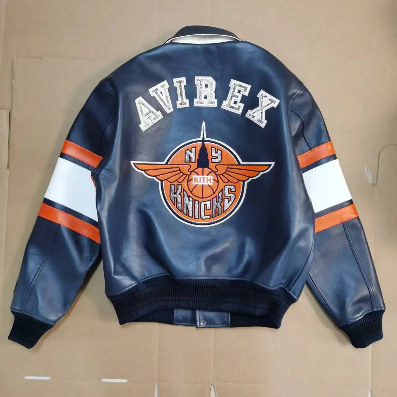AVIREX New York Knicks co-branded men's new listing basketball pattern flight suit European antique sheepskin jacket fashion top