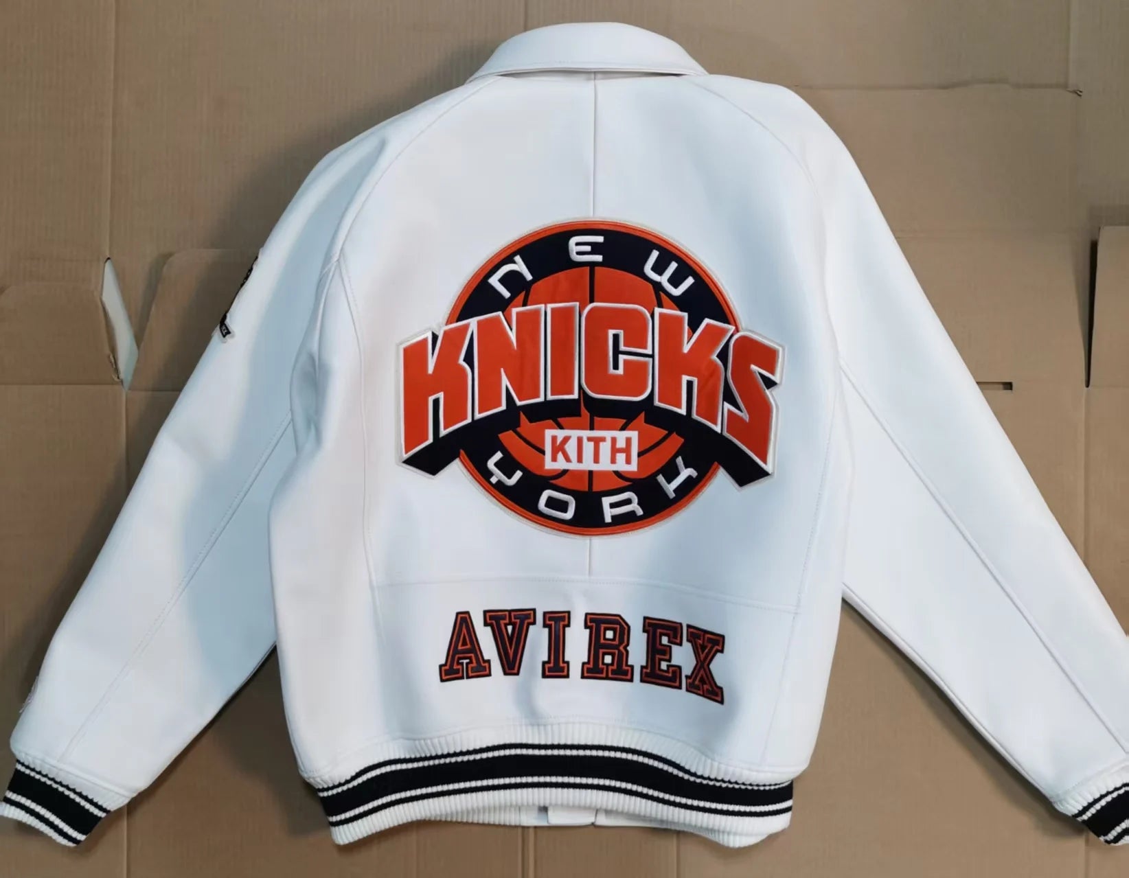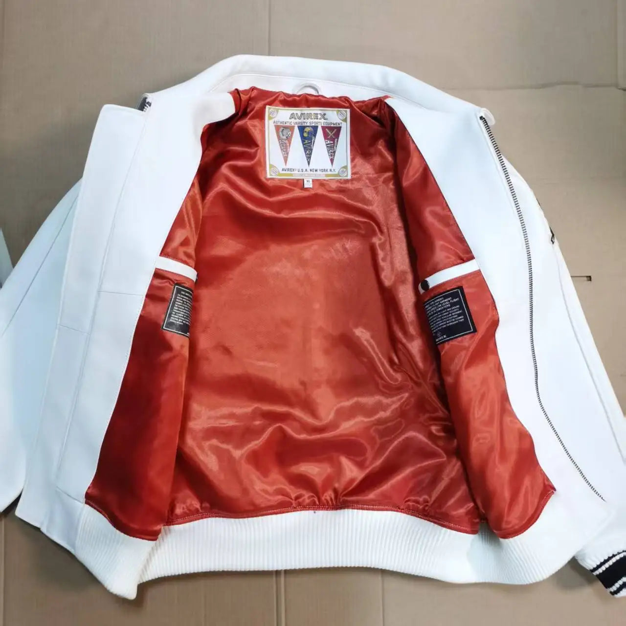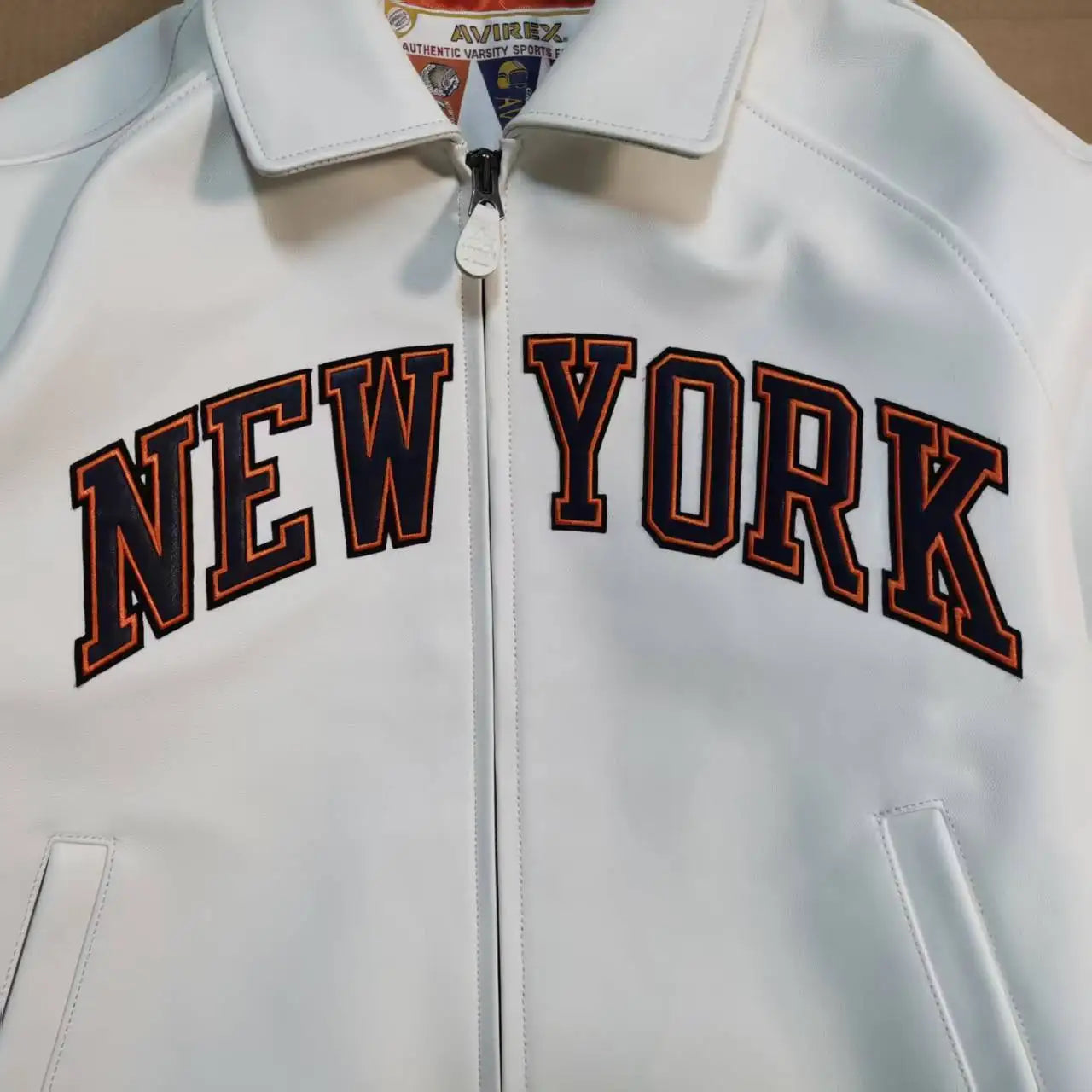 AVIREX New York Knicks co-branded men's new listing basketball pattern flight suit European antique sheepskin jacket fashion top