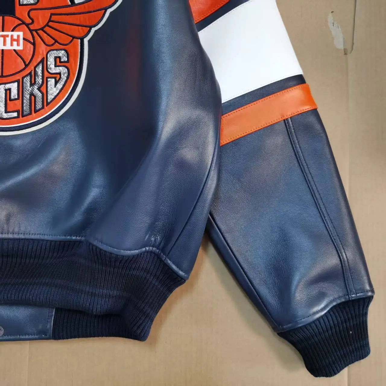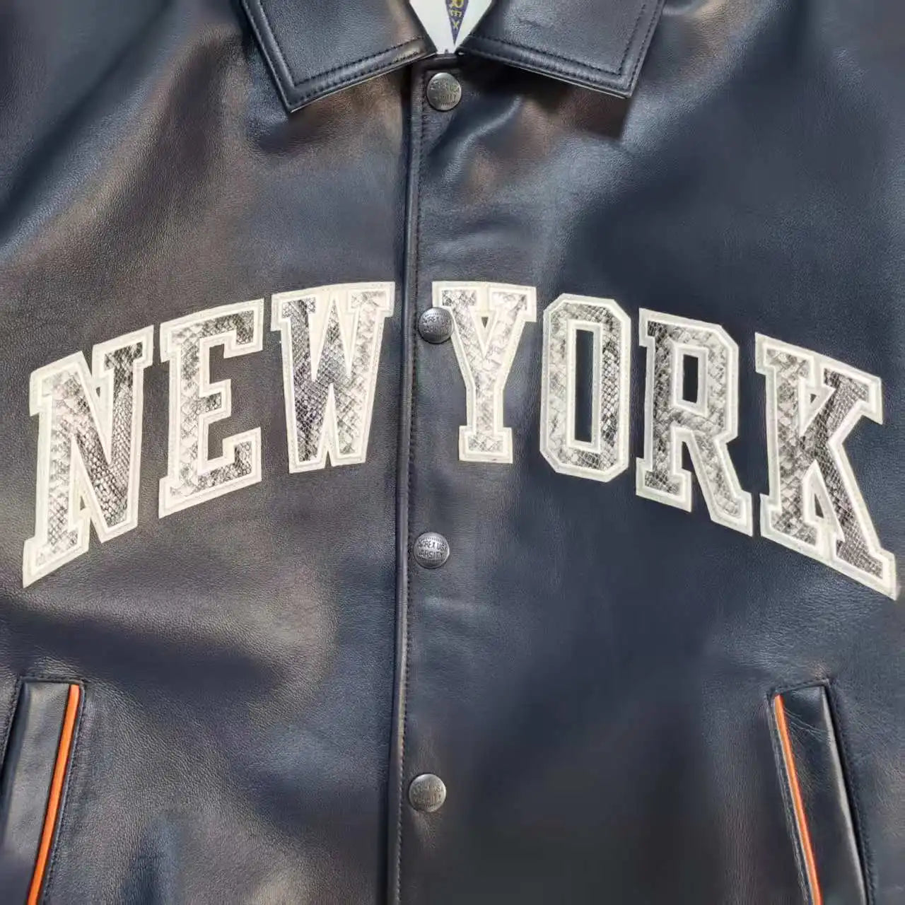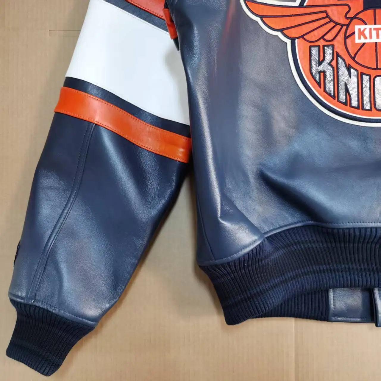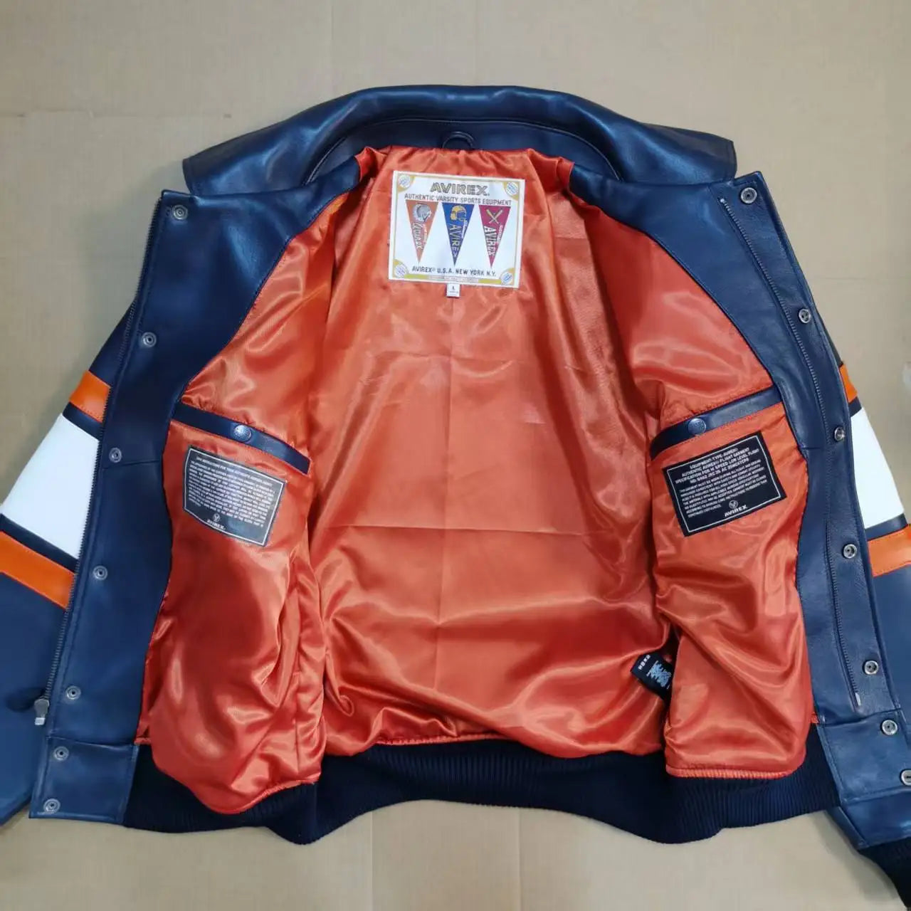 AVIREX New York Knicks co-branded men's new listing basketball pattern flight suit European antique sheepskin jacket fashion top