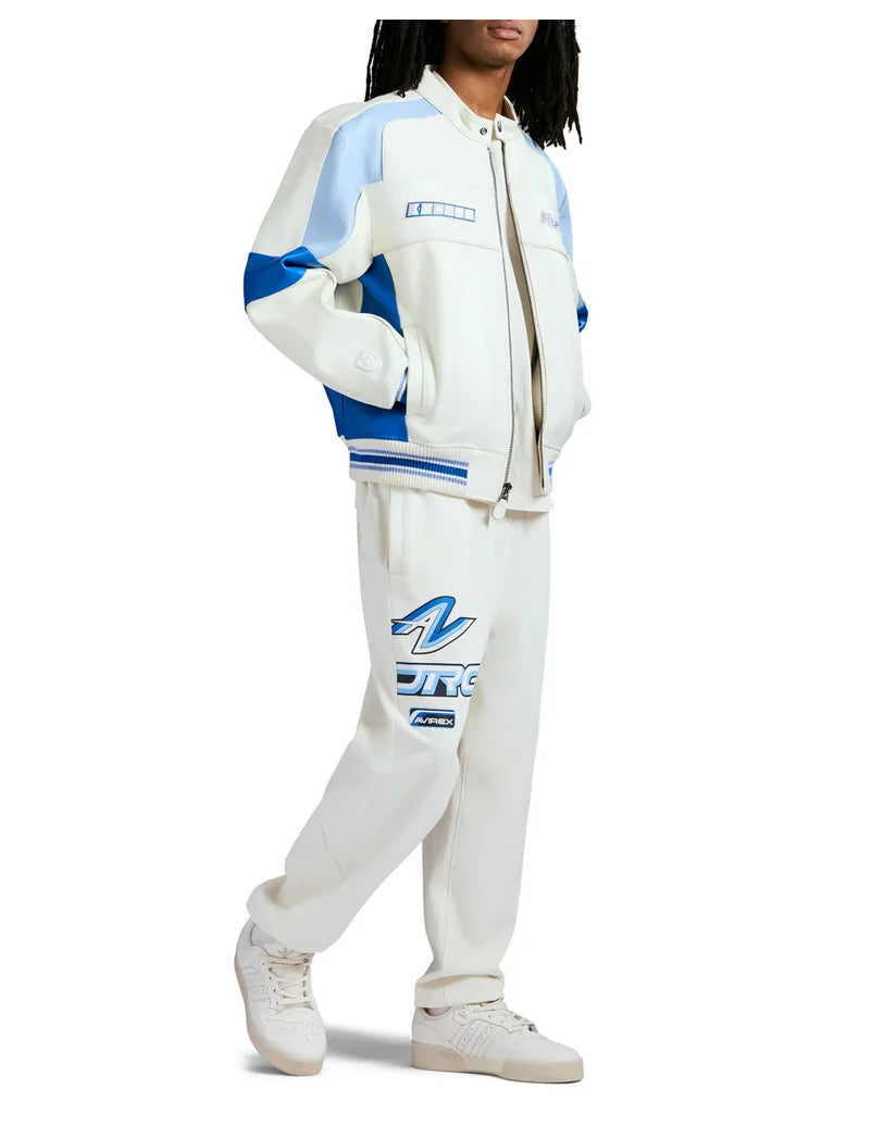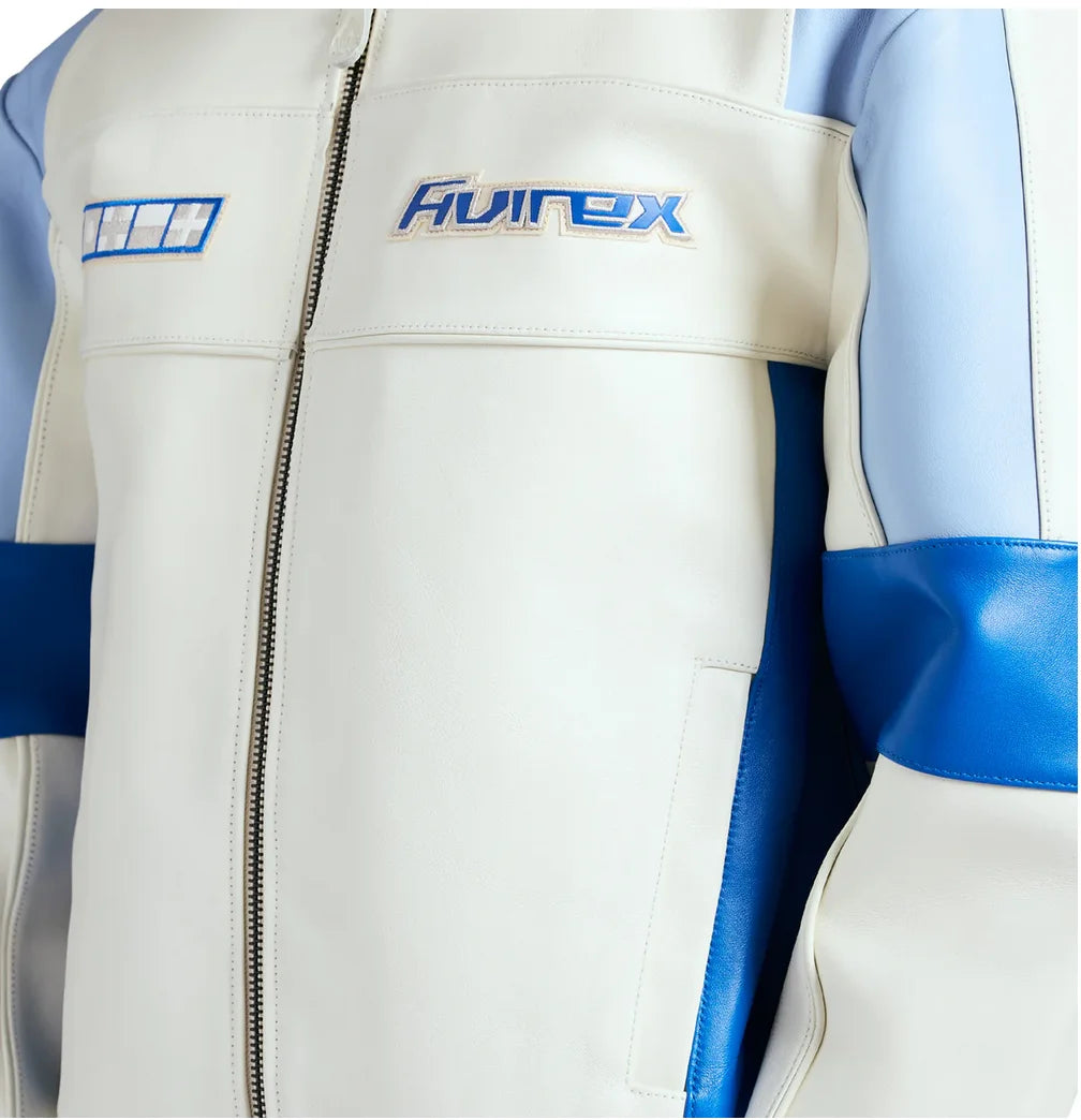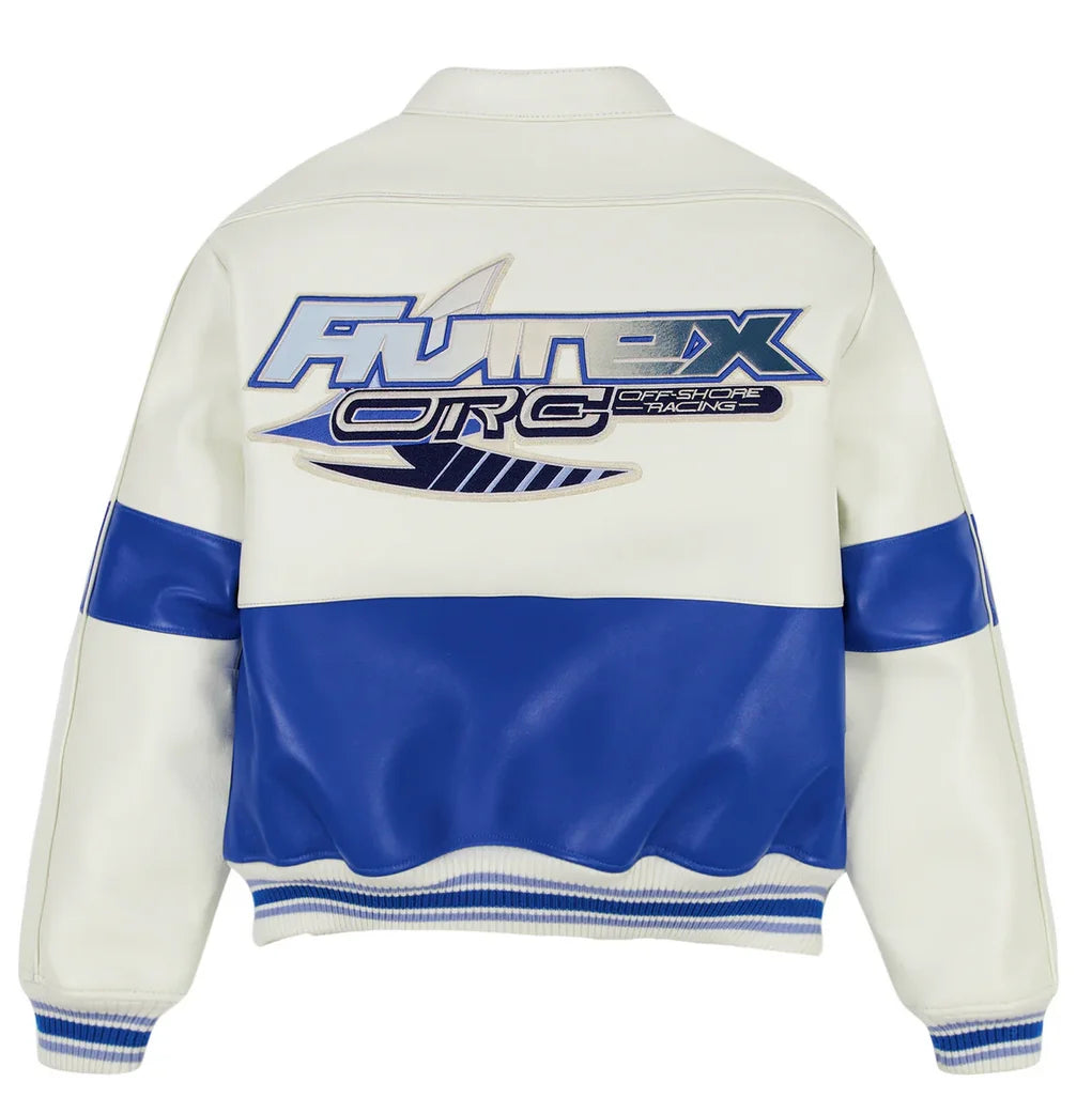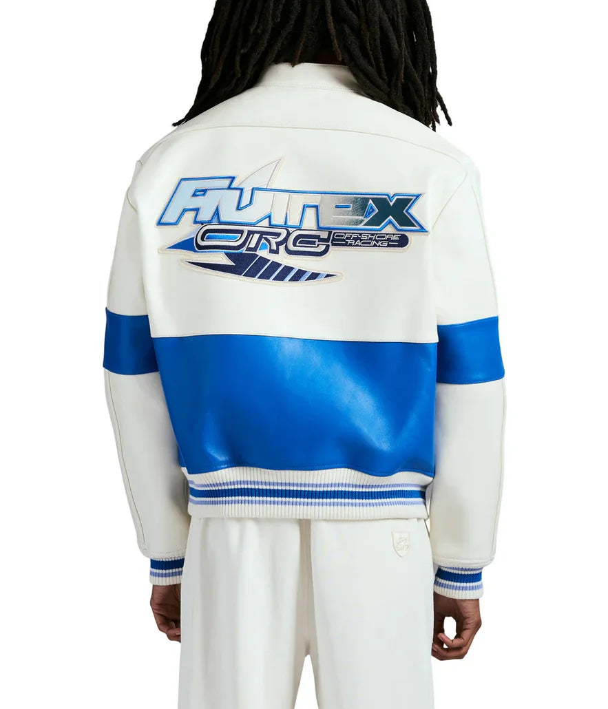 Off-Shore Racing jacket in 100% leather. Features emblem art at chest.