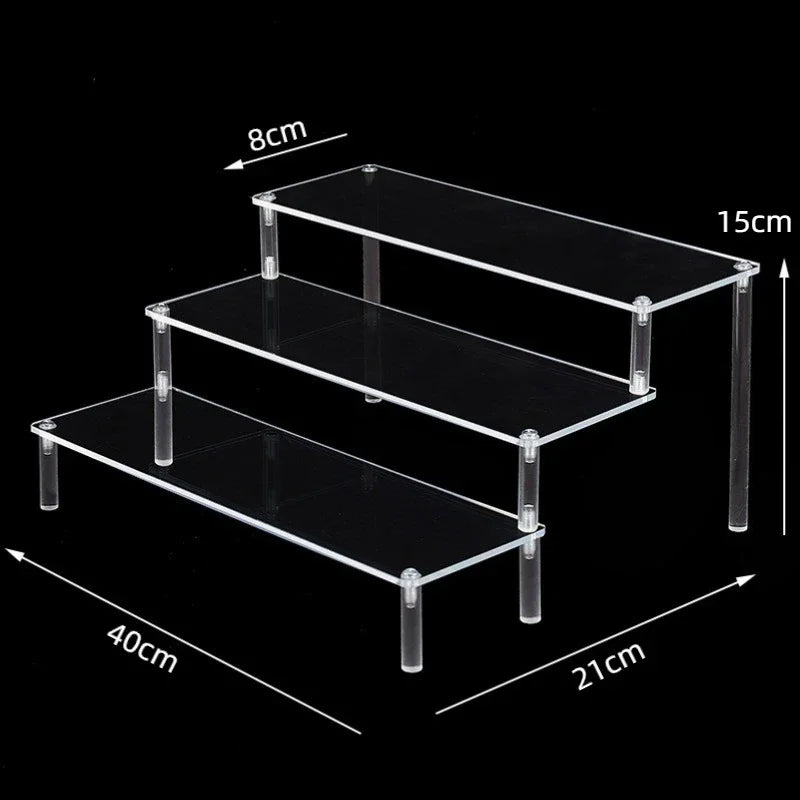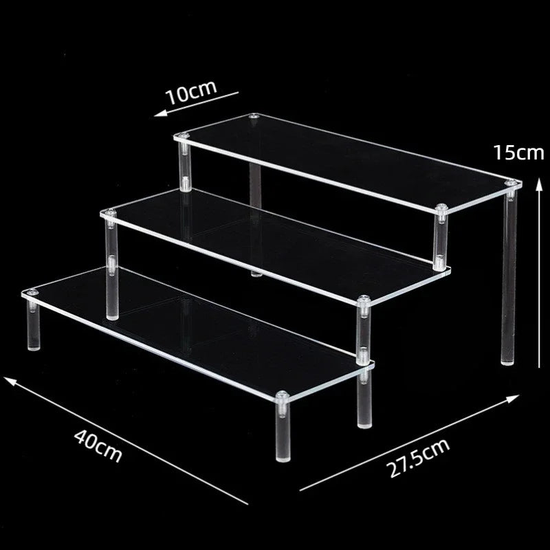 Black 1-5 Tier Acrylic Display Stand Clear Display Riser Rack for Cupcake Perfume Doll Décor Organizer Amiibo Funko POP Figures