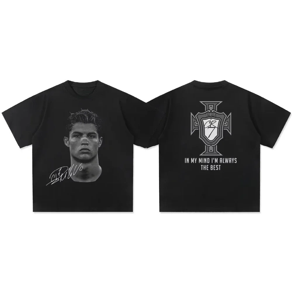 Cristiano Ronaldo Head T Shirt with Signature Trendy Graphic Tee Ronaldo CR7 Cristiano Ronaldo Shirt Ronaldo Vintage Football