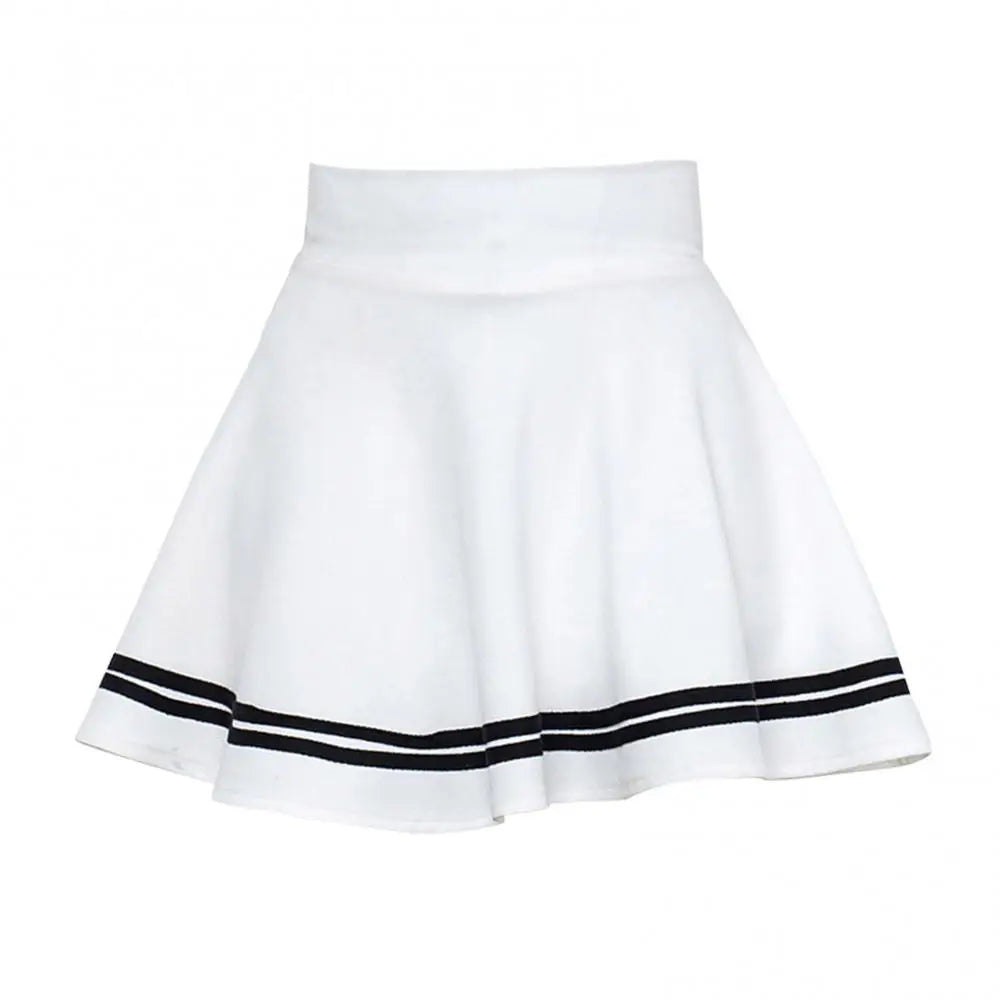 Women Fashion Solid Color High Waist Stripe Pleated A Line Mini School Skirt