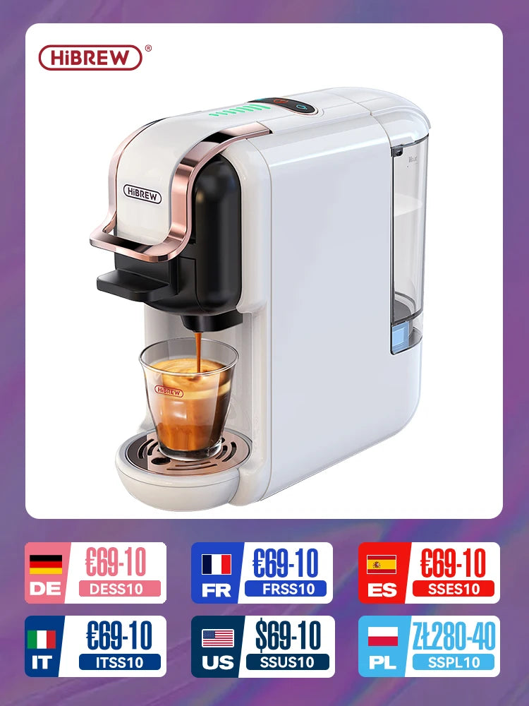 HiBREW Multiple Capsule Coffee Machine, Hot/Cold Dolce Gusto Milk Nespresso Capsule ESE Pod Ground Coffee Cafeteria 20Bar 5 in 1