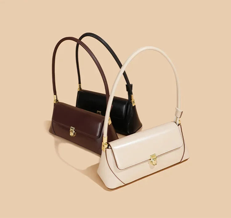 Genuine Cowhide Leather Shoulder Bag for Women – Underarm Style, Casual Phone & Makeup Clutch, Korean