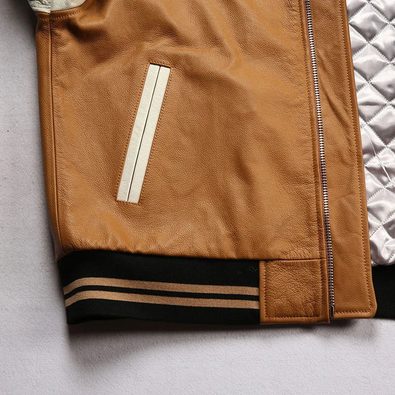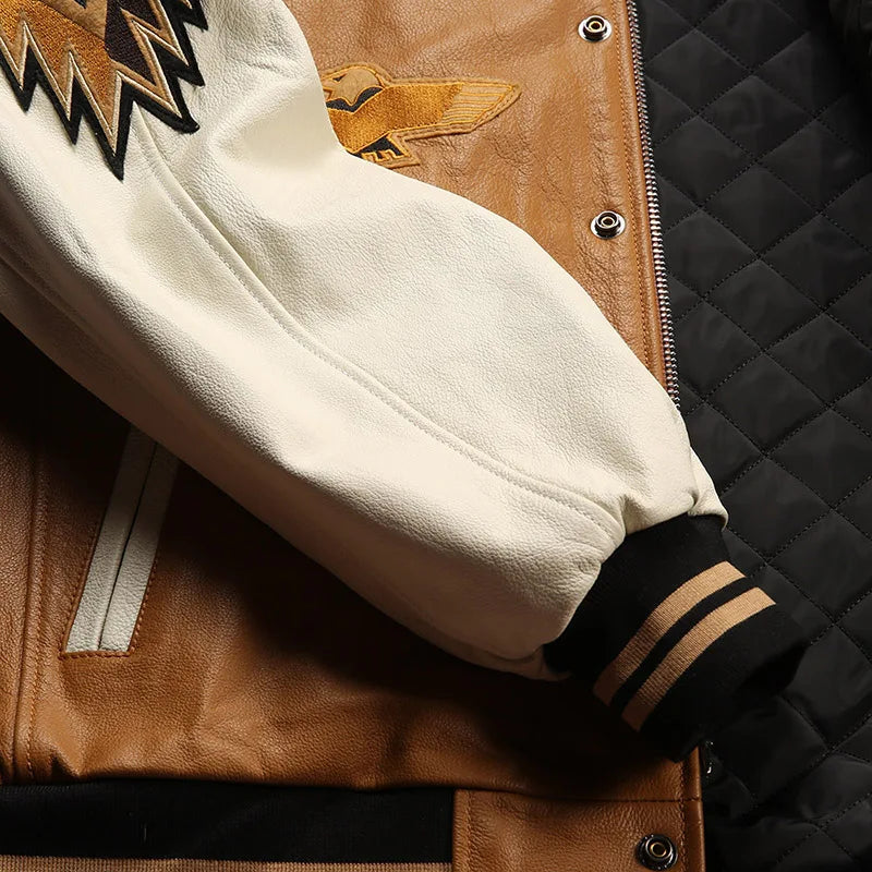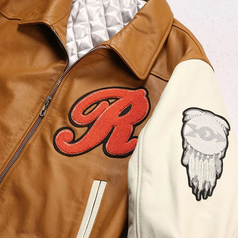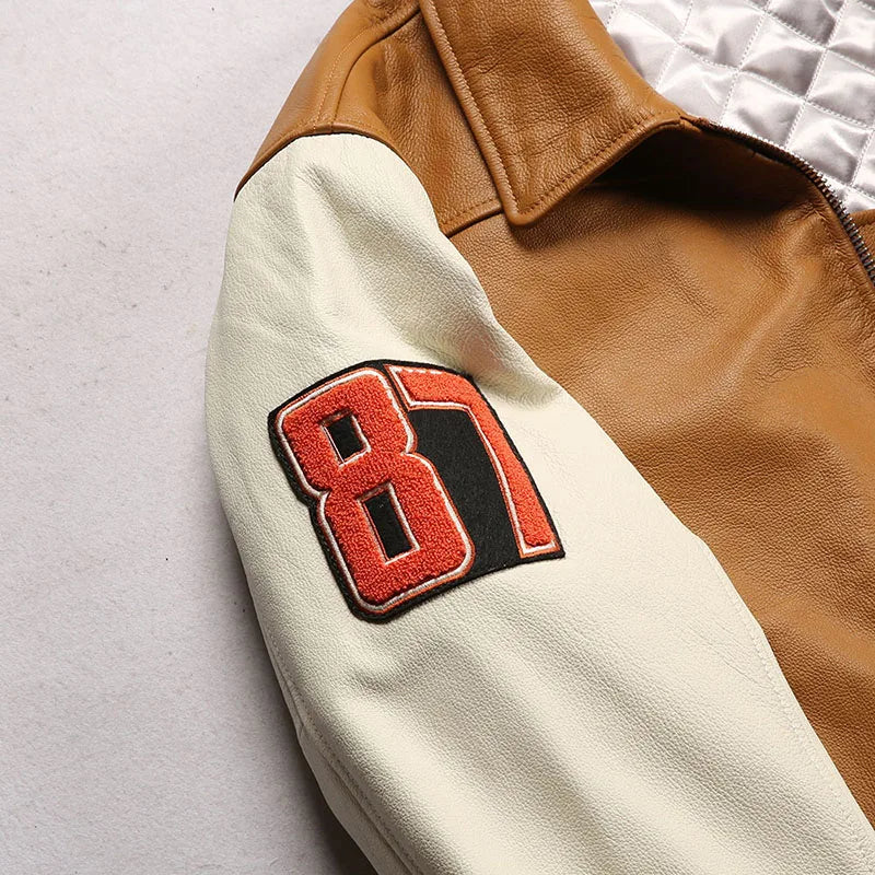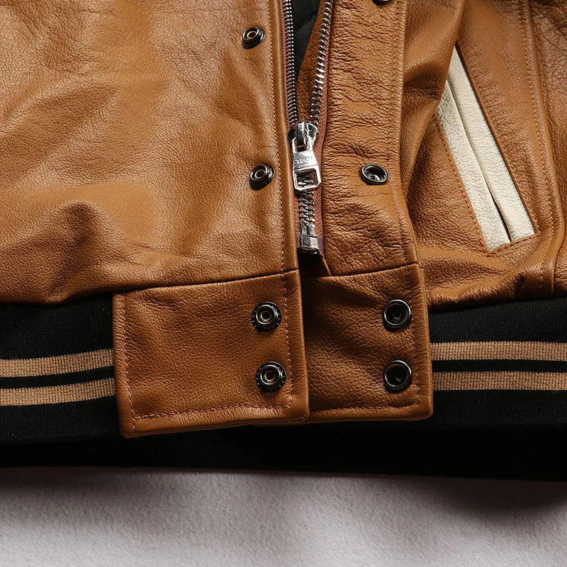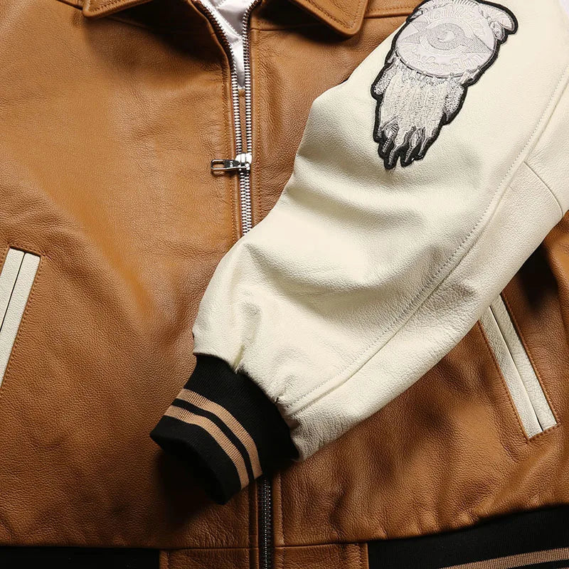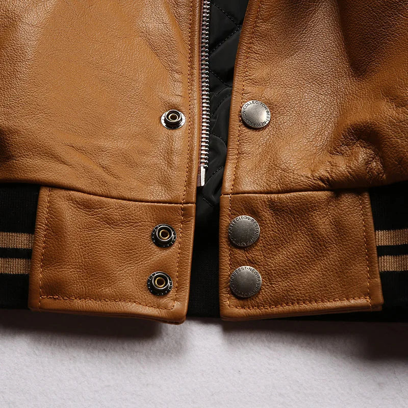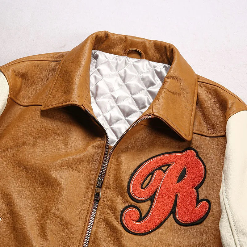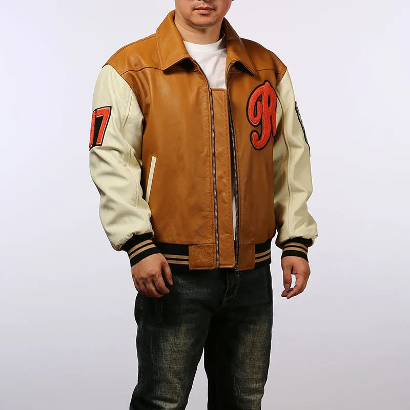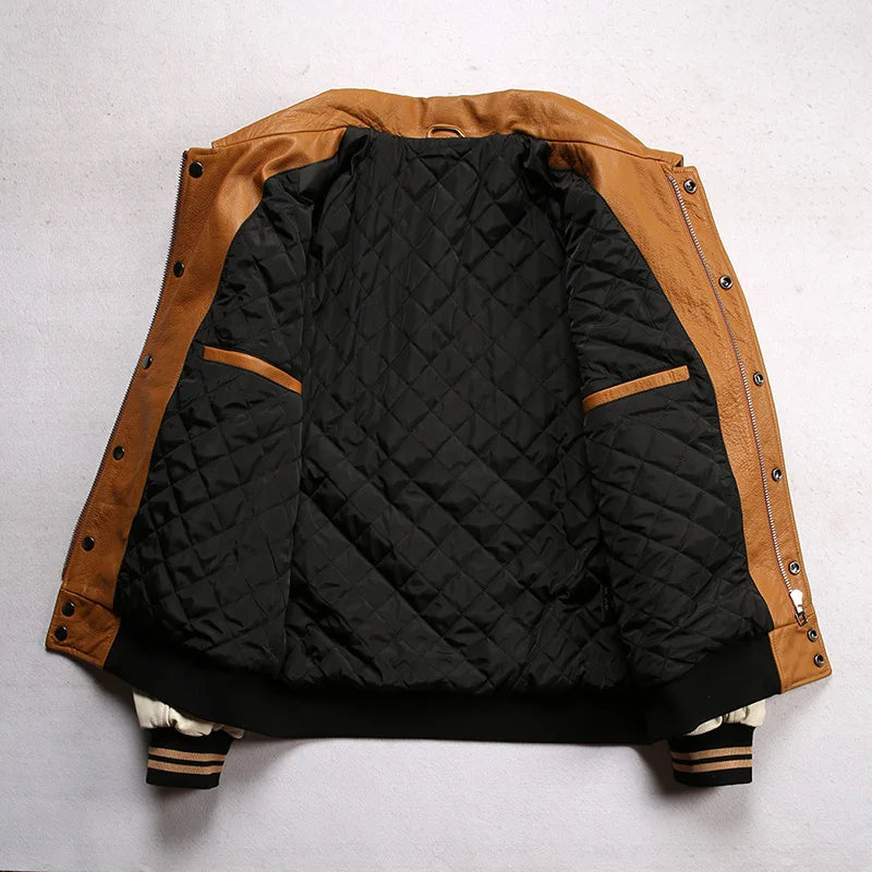Men large size leather jacket flight suit jacket printed big chief embroidery casual sports yellow cowhide leather jackets tops