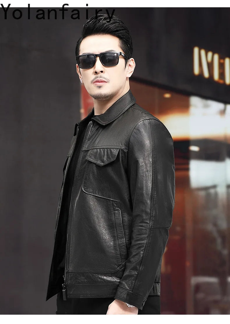 Men's Distressed Genuine Cowhide Leather Jacket – Spring Autumn Casual Slim Fit