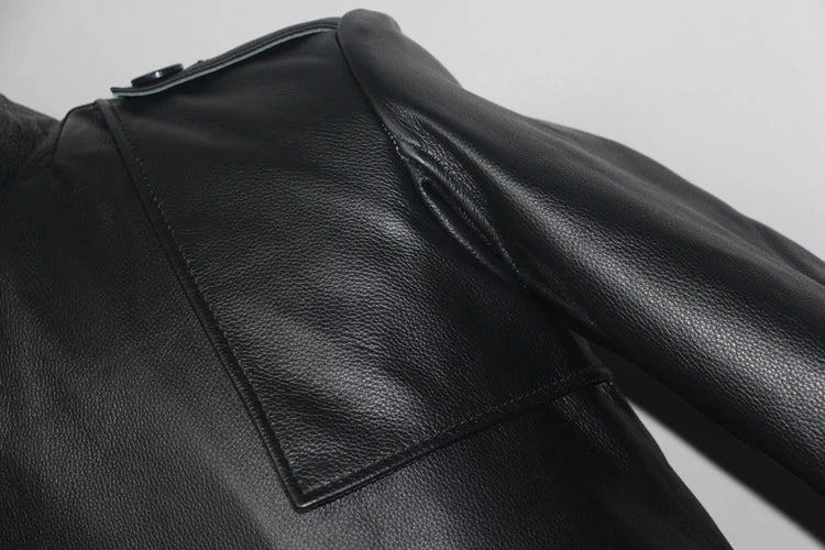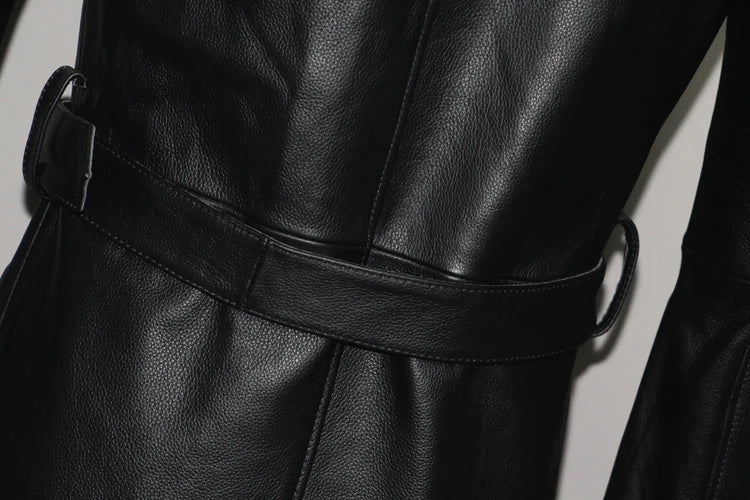 Men's Leather Trench Coat, Genuine Cowhide, Double Breasted, Extended Length Trench Long Coat Windproof Belt, Autumn Winter,6XL