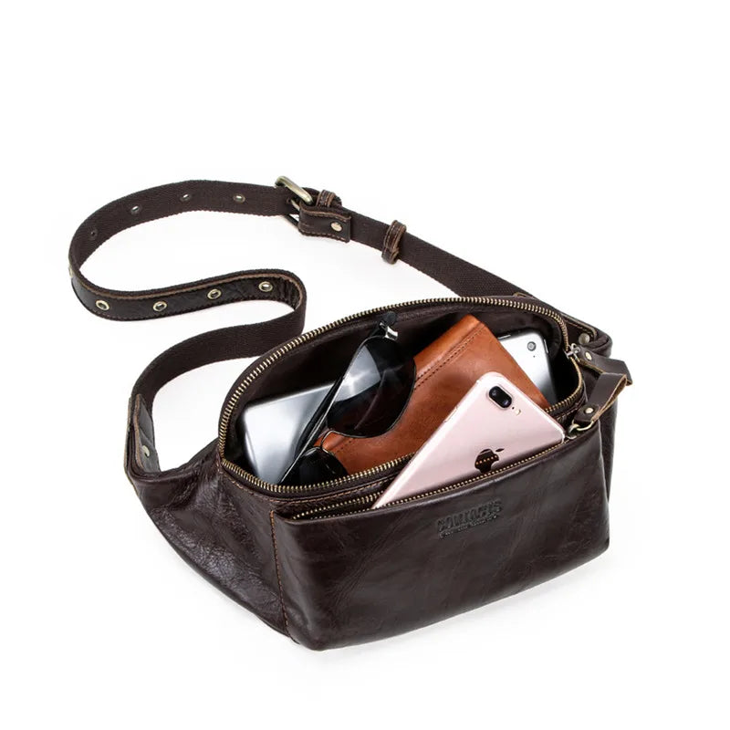 MOTAORA Men's Genuine Leather Waist Bag Multifunctional Chest Pack for Travel & Sports Anti-Theft Phone Pouch Gym Crossbody Bag