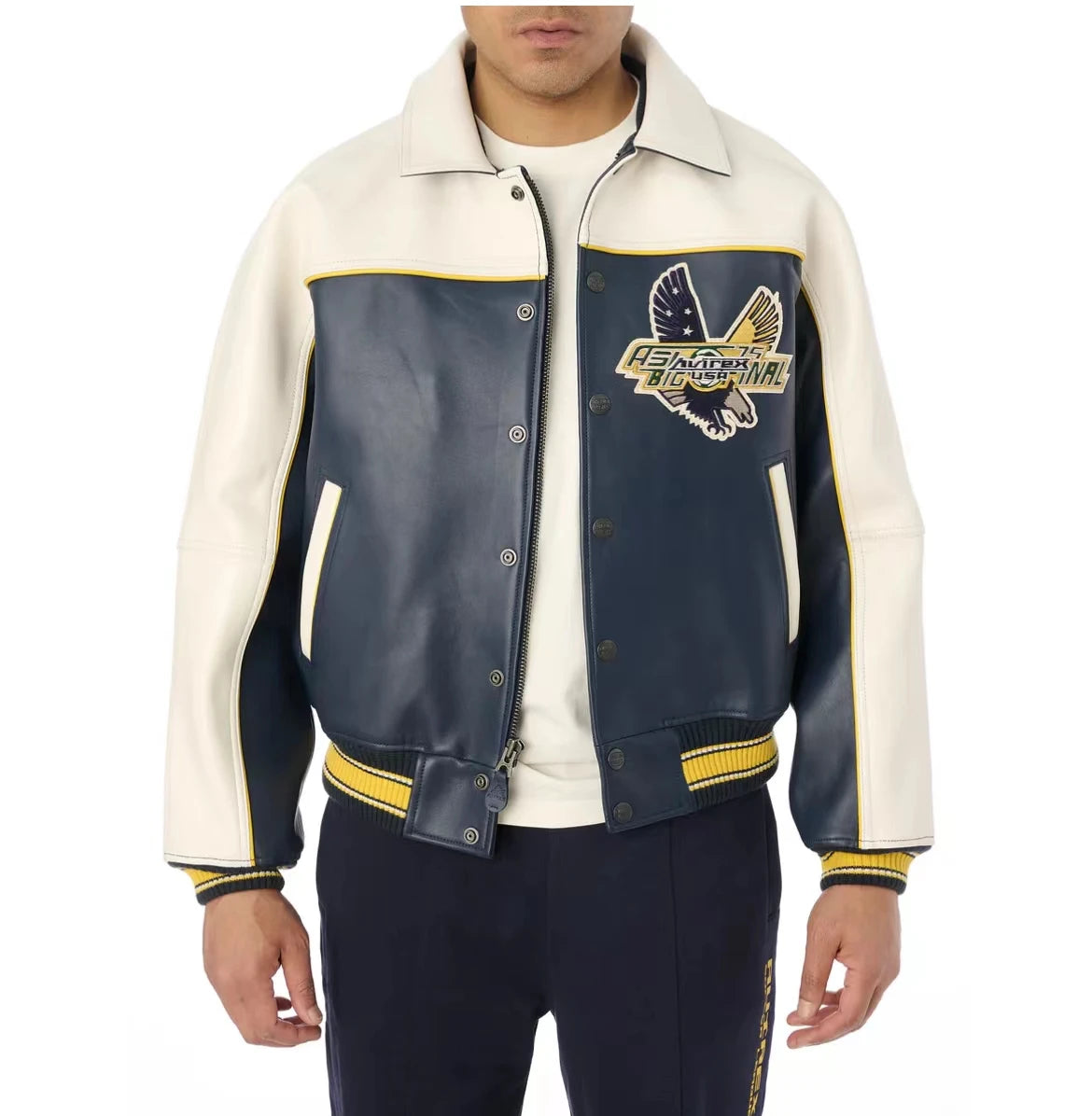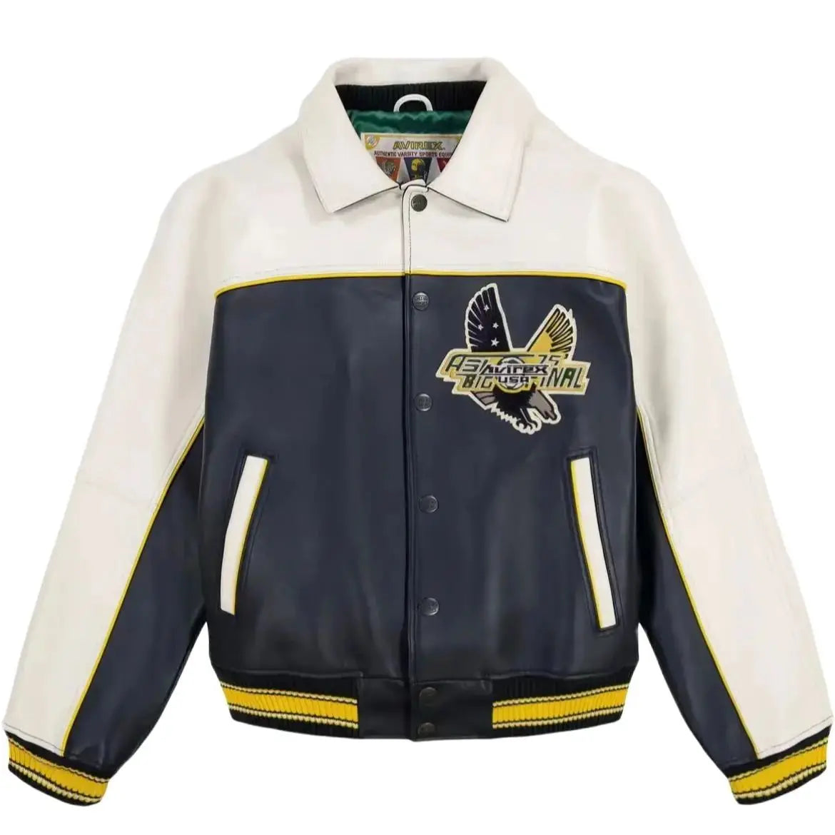 New Release AVIREX European Antique Sheepskin Jacket Genuine Leather Jacket men's Tops TRACK SOCCER JACKET color combination