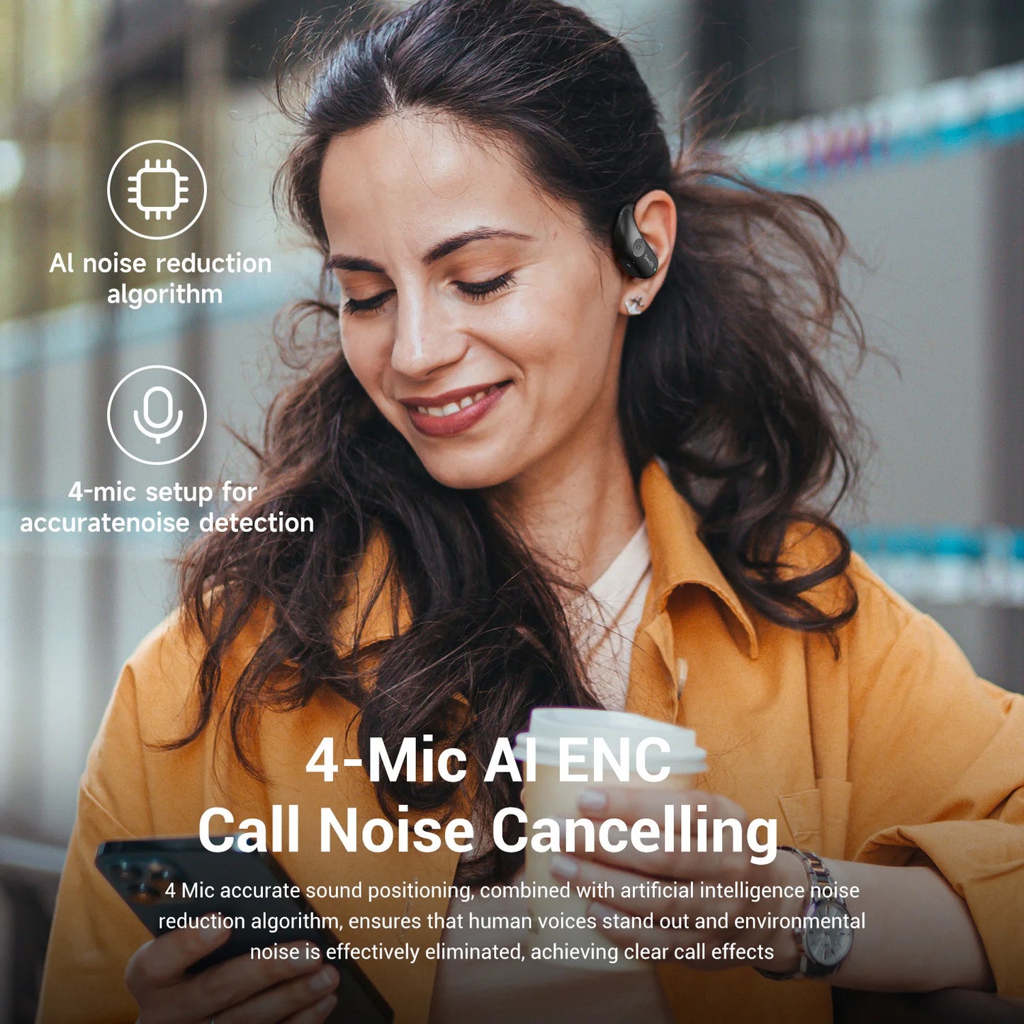 The advanced AI algorithms and 4-mic systems filter out unwanted noise from your surroundings, ensuring your voice remains clear and intelligible during calls.