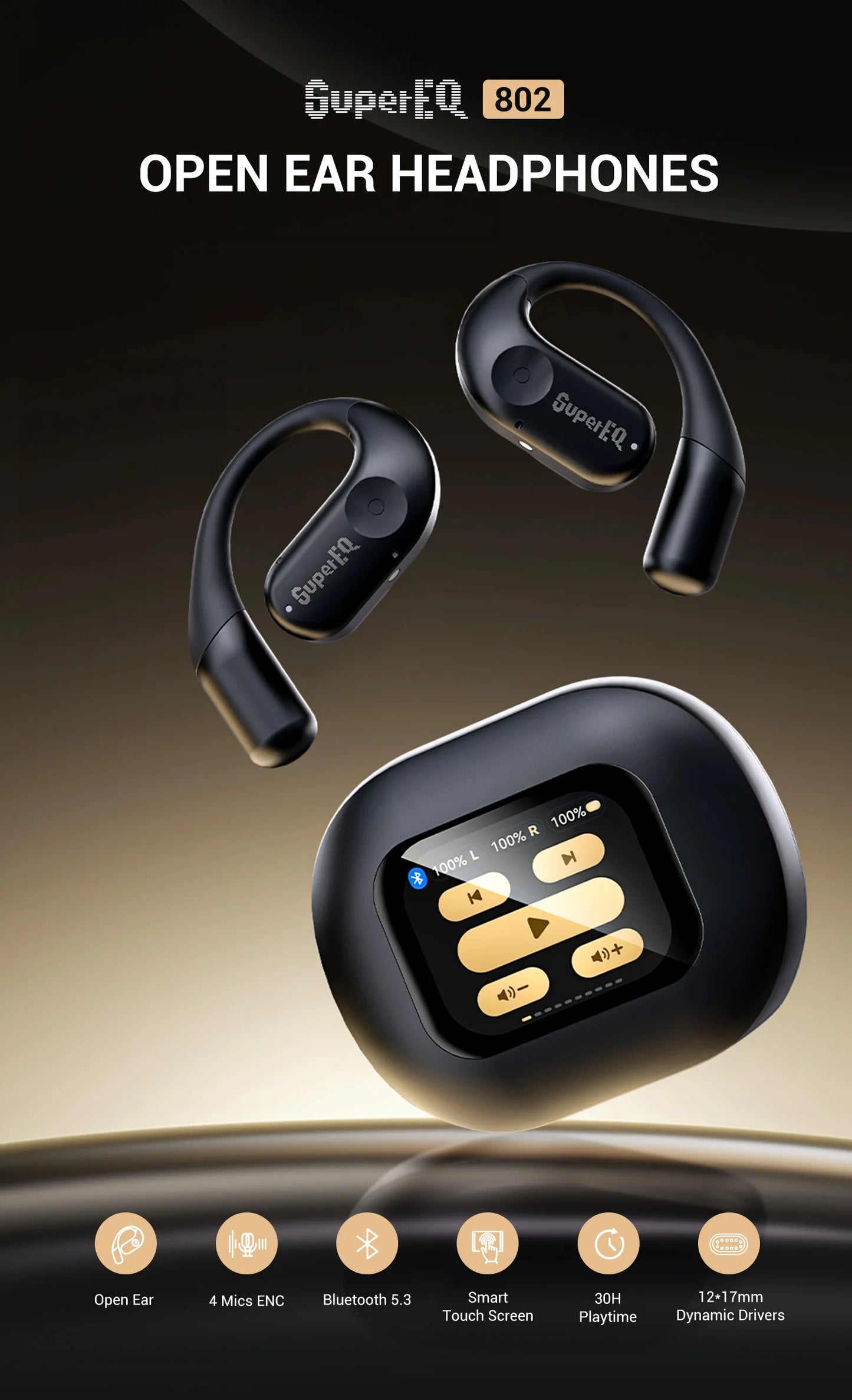 802 with 2inch lPS full-color touch screen for free control of music playback and Equalizer And Ambient Sound. etc 10+ functions