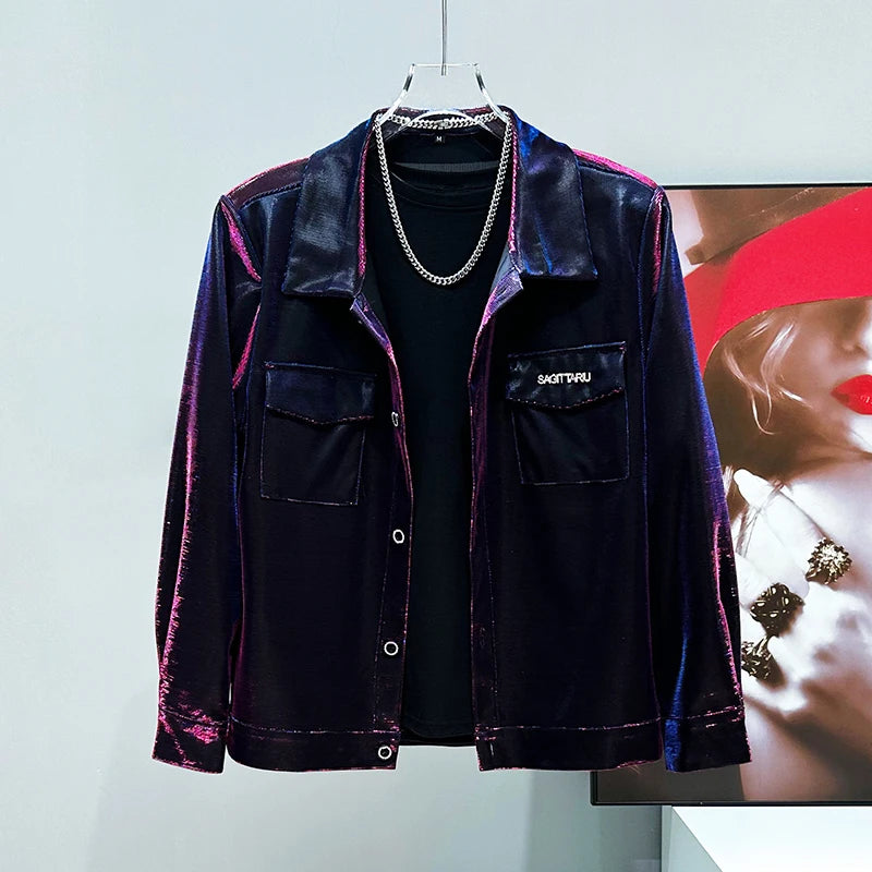 PFHQ Trendy New Male Jacket Gradient Color Shoulder Pad Design Menswear Cool Colorful Lapel Long Sleeve Handsome Clothes 21E6145