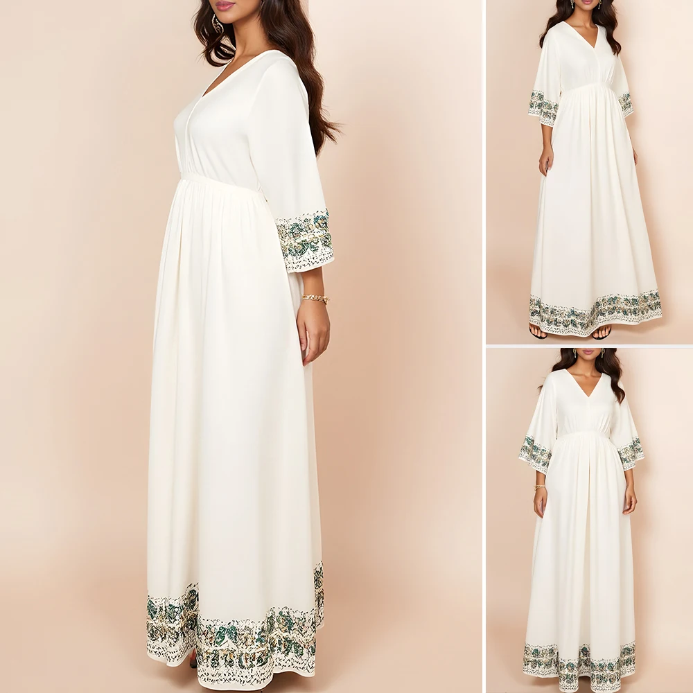 Rafiah Autumn Arabian Long Dress 2025 Decent Elegant Graphic Printing Long Sleeve V-Neck Midi Dresses Daily Dress For Women