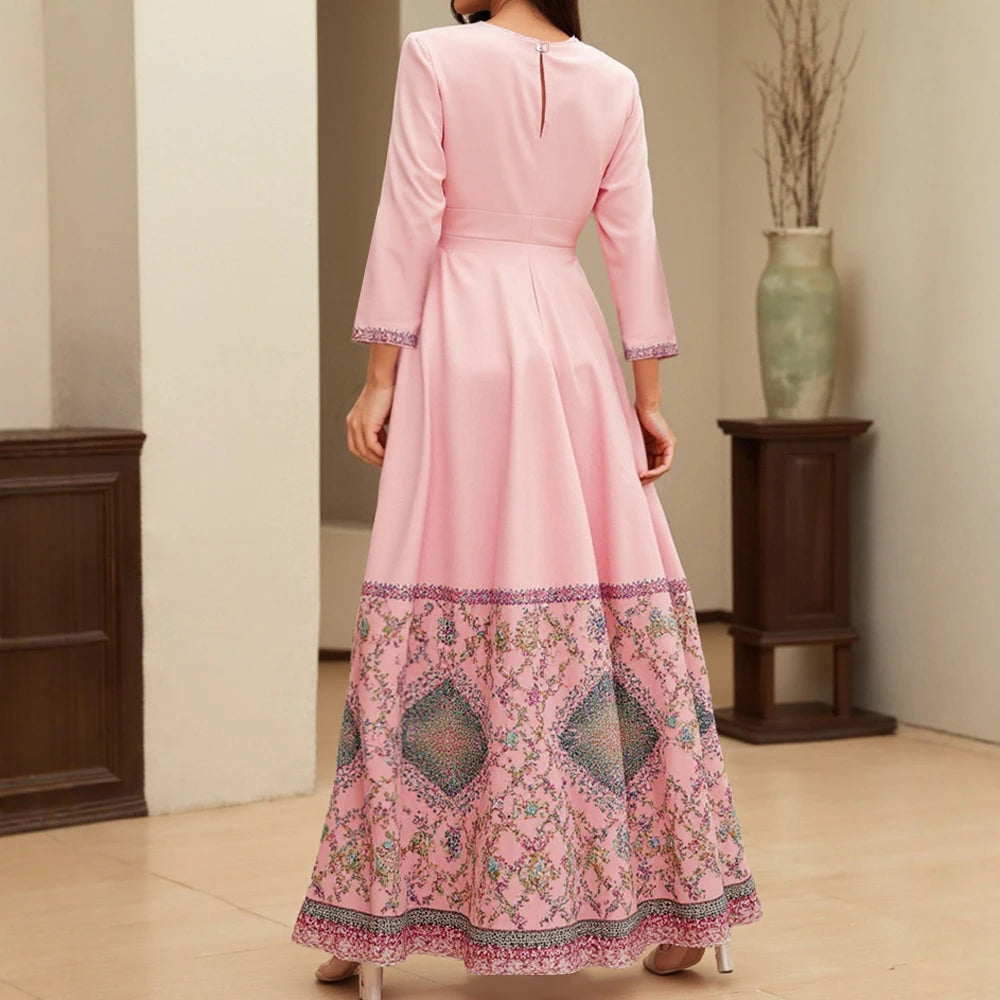 Rafiah Women's Dresses Summer Elegant Decent 2025 Cultural Print Long Sleeve V-Neck Midi A Line Casual Long Dress