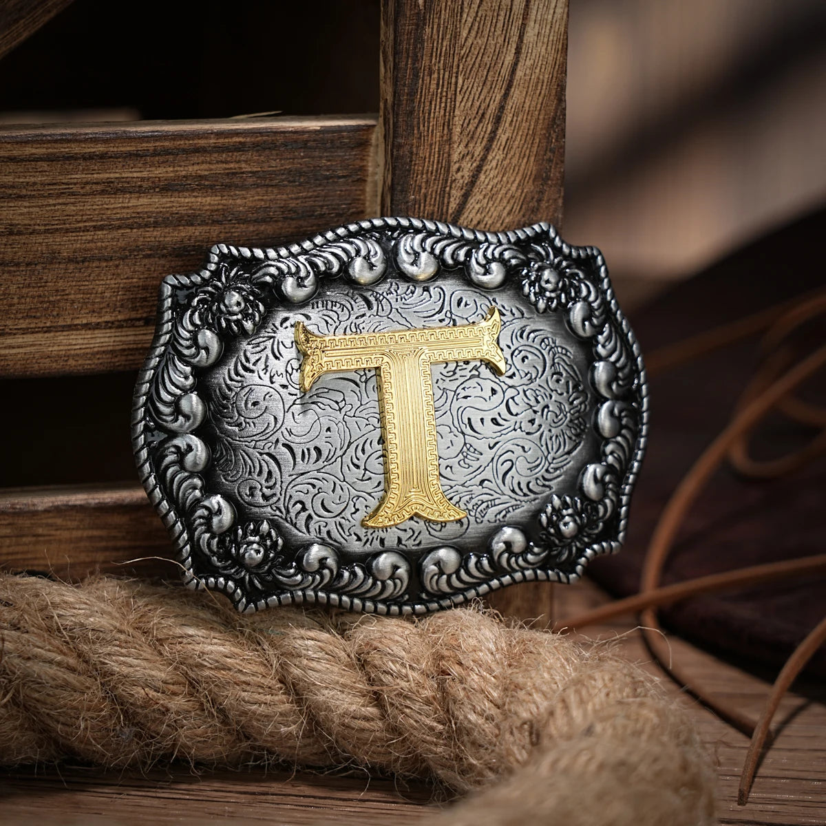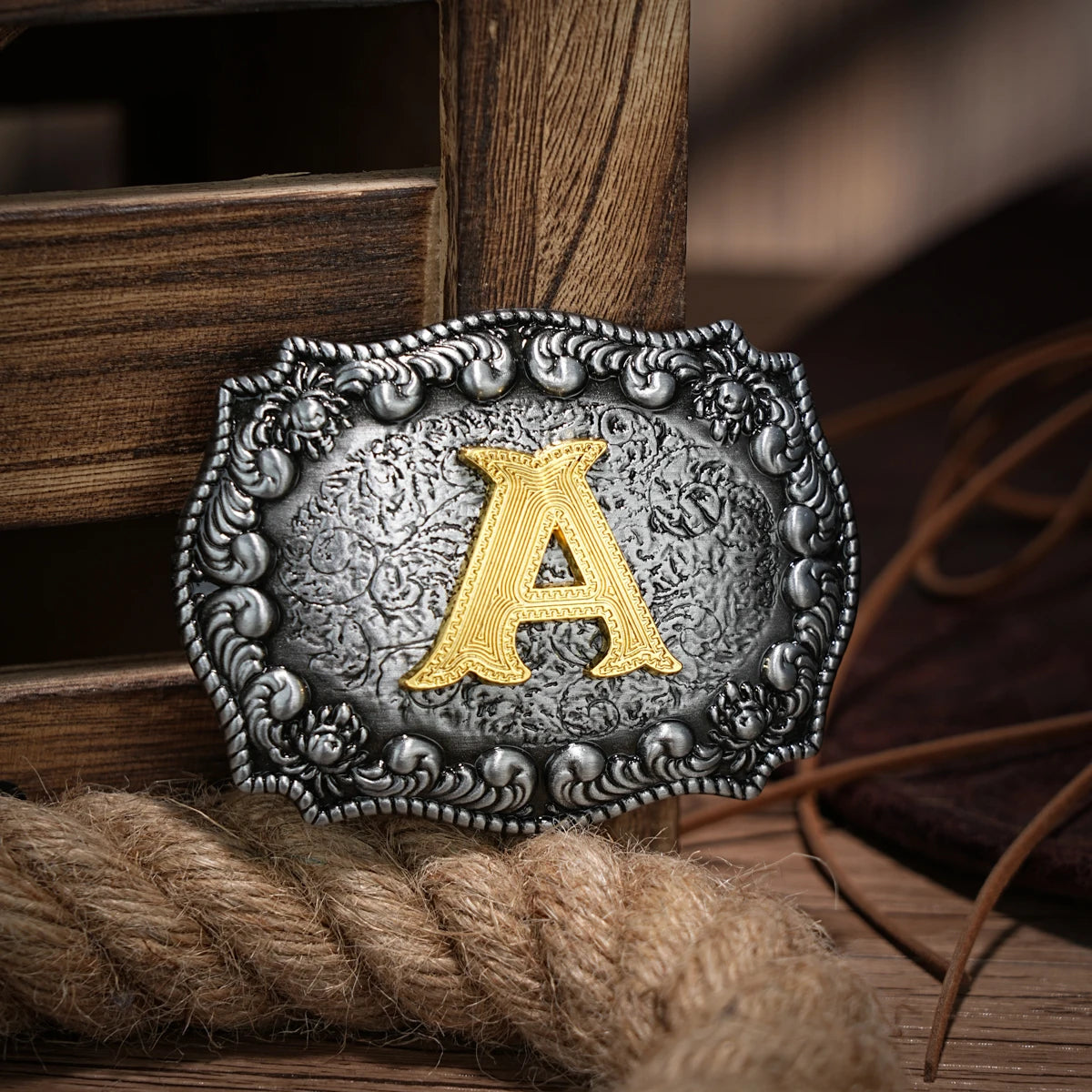 Western Belt Buckle Initial Letters ABCDEFG to Y-Cowboy Rodeo Silver Large Belt Buckle for Men Women
